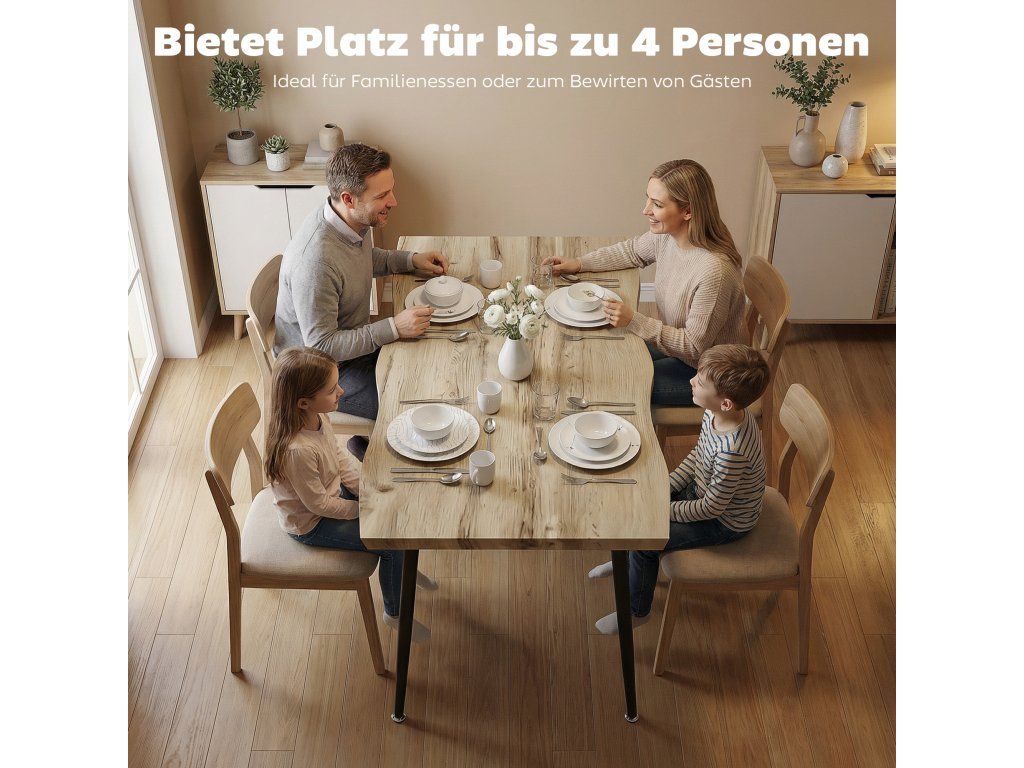✔ Prostorná deska stolu pohodlně pojme čtyři osoby pro každodenní stolování.