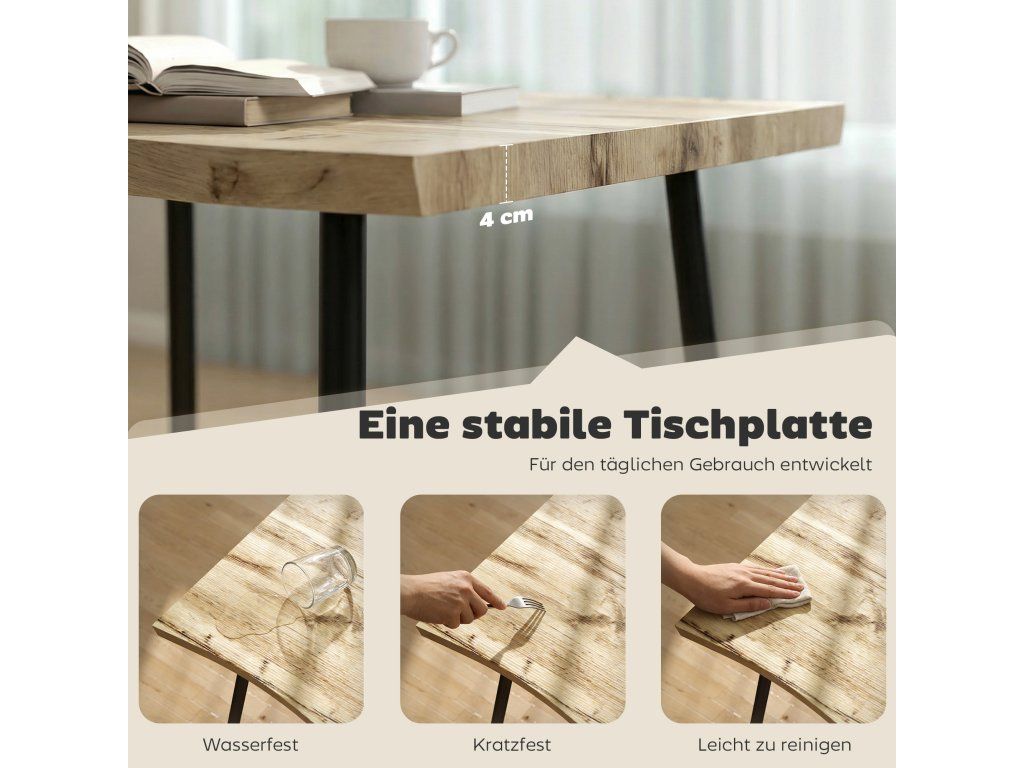 Snadná montáž a péče: Kuchyňský stůl lze díky přiloženému návodu a dílům sestavit za 20 minut. Hladký PVC povrch je odolný proti poškrábání, snadno se čistí a je ideální pro bezstarostné každodenní používání.