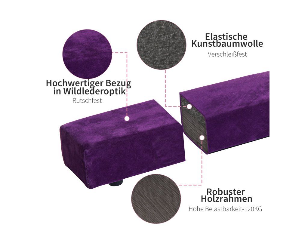 Bezpečné a pohodlné uchopení: Vysoce kvalitní semišový potah poskytuje protiskluzový úchop a zajišťuje pohodlí při každém cvičení. Ideální pro gymnastické cviky, jako jsou skoky, stojky na rukou a cvičení rovnováhy.