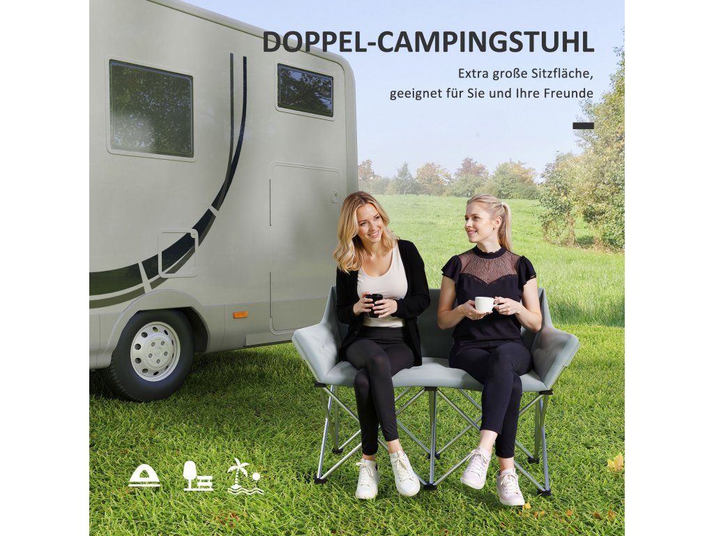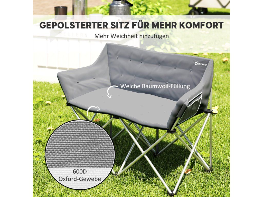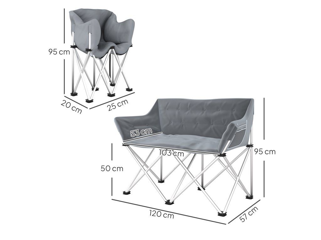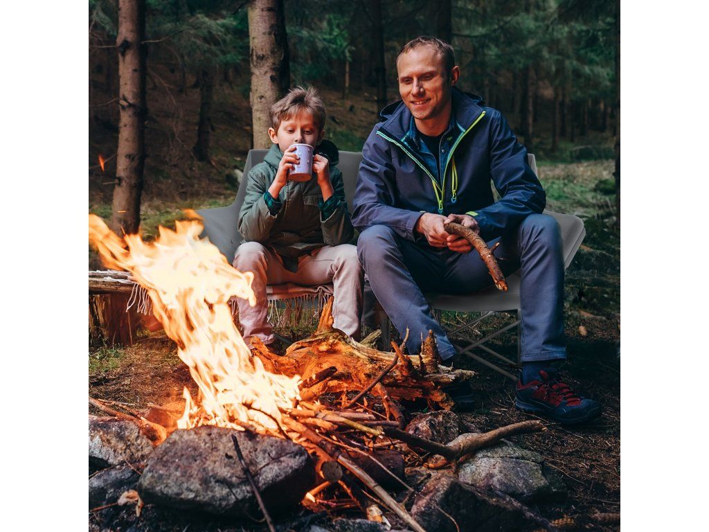 Kempingová židle dvoumístná skládací | šedá