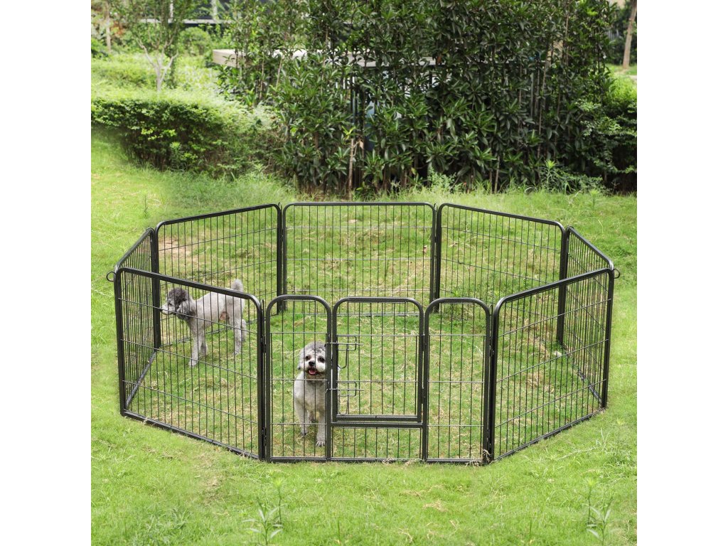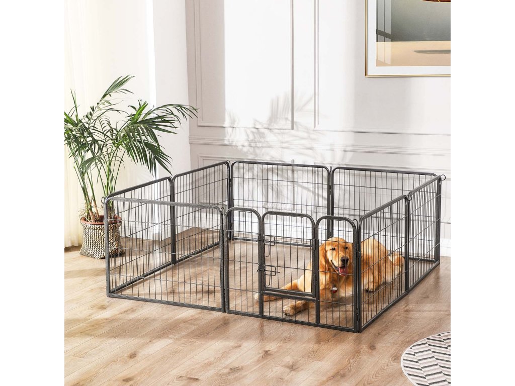 8-panelová ohrádka pro psy, železná klec pro psy, ohrádka pro štěňata, skládací a přenosná, 77 x 60 cm, šedá.
