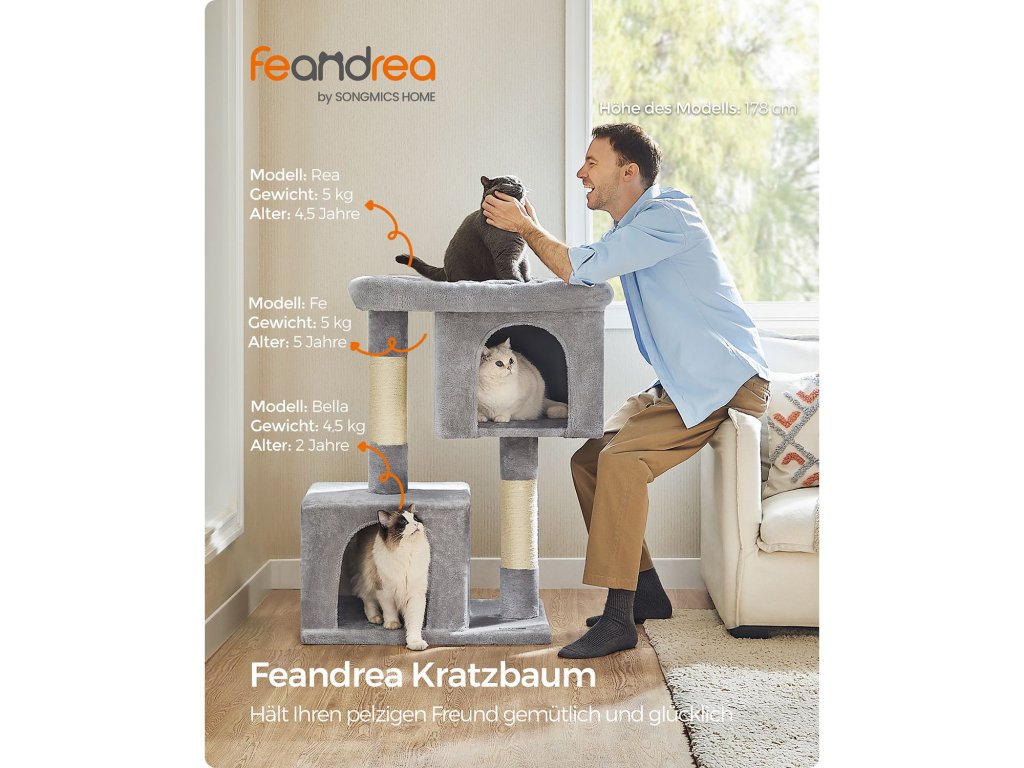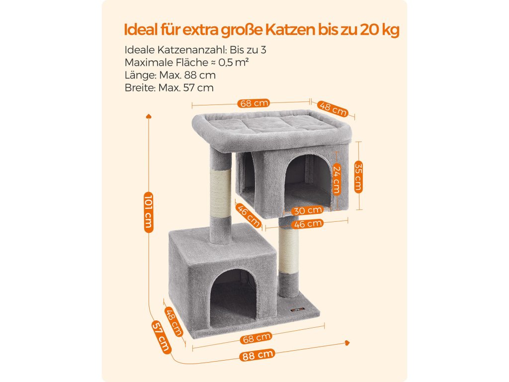 Škrabadlo pro kočky Feandrea, 101 cm kočičí věž, XL, kočičí škrabadlo pro extra velké kočky do 20 kg,