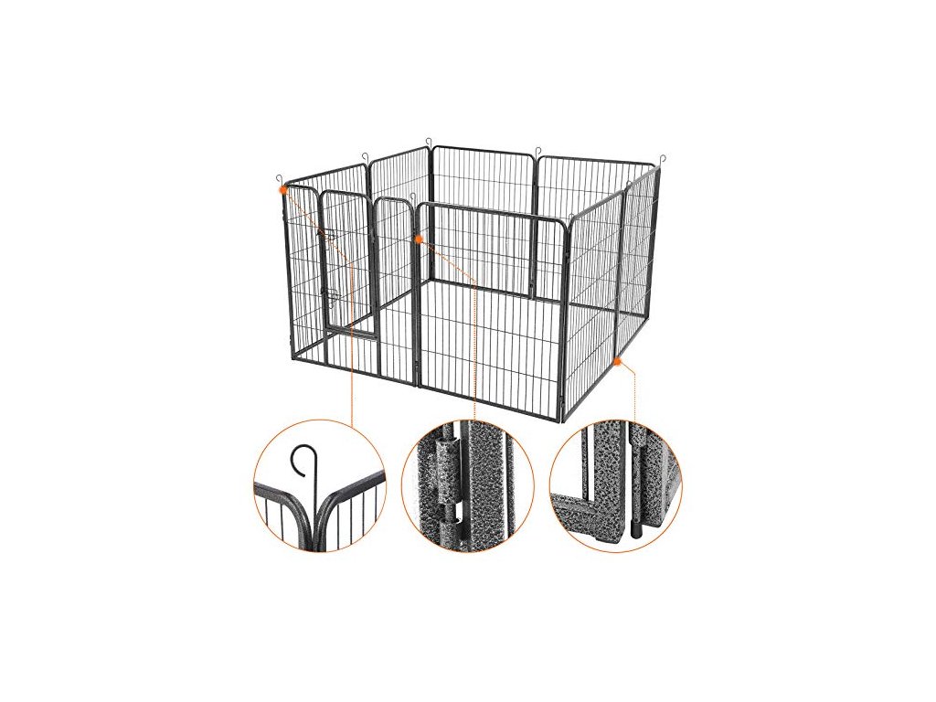 MÍSTO PRO PEJSKA: Rodinné setkání na zahradě neznamená, že musíte nechat psa uvnitř samotného. Pozvěte ho, aby si užíval šťastné chvíle se všemi ve svém okolí v ohrádce pro domácí mazlíčky s 8 panely o rozměrech 77 x 100 cm. Pokud máte doma psí maminku, tento výběh skvěle poslouží i jako vnitřní dětský pokoj.DVOJÍ OCHRANA: Vaše bačkory budou uchráněny před kousnutím vašich pejsků a díky záklopkám ve tvaru L na dveřích už nebudou mít žádné otisky zubů; i když je váš pes neuvěřitelně inteligentní, nebude schopen otevřít dveře. Kovové části jsou vybaveny podložkami a krytkou chránícími podlahu před poškrábáním;TAKTO TO FUNGUJE: Vložte spojovací tyče do spojů a postavte hrad ve tvaru čtverce, obdélníku. osmiúhelník nebo nepravidelný tvar! Popusťte uzdu své kreativitě a plně využijte svůj dům nebo kompaktní dvůr.MALÍ PŘÁTELÉ VÍTÁNI: Je to vynikající hřiště pro skotačení a může také sloužit jako přepážka pro malé domácí mazlíčky, jako jsou štěňata, králíčci atd..JEŠTĚ NEJSTE SPOKOJENI? FEANDREA vám poskytne profesionální zákaznický servis před nákupem i po něm; nečekejte déle a pořiďte si tento přístroj domů ještě dnes.