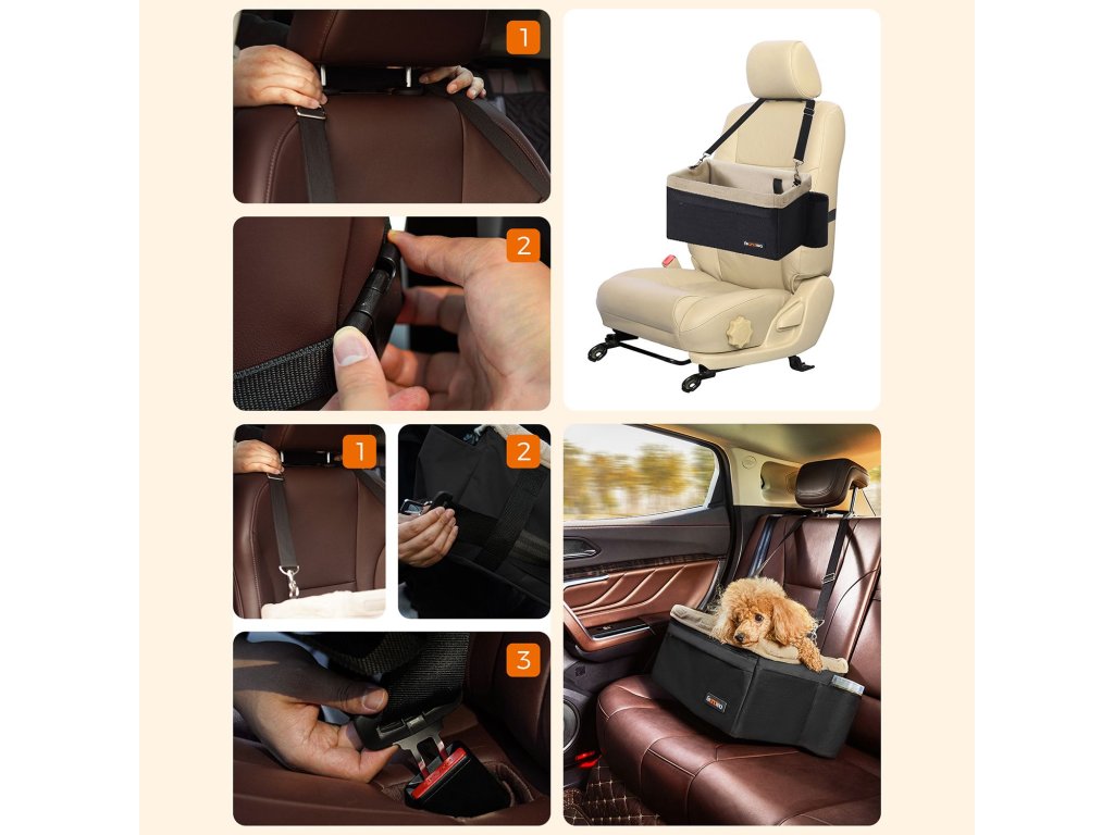 Nastavitelná výška: popruh kolem opěrky hlavy je nastavitelný, takže si můžete autosedačku pro psa nastavit do ideální výšky a váš pes si může na cestách užívat výhled.Pro bezpečnou cestu: #Zásada č. 1 pro bezpečnou jízdu - dívejte se na cestu, ne na svého psa. Díky nastavitelnému popruhu a robustní konstrukci s ocelovým kroužkem a pevnými bočnicemi nabízí tato sedačka pro psy maximální bezpečnost.Po cestě: čištění a skladování není problém. Jednoduše vyjměte vnitřní podšívku pro čištění, složte sedačku pro psy na plocho, abyste ji mohli prostorově úsporně uložit, a mějte ji připravenou na další cestu.Pro zvířata do 8,2 kg: sedadlo o rozměrech 42 x 32 x 22,5 cm unese až 11,8 kg, ale zvířata s hmotností mezi 8,2 a 11,8 kg jsou příliš velká na to, aby se v něm pohodlně usadila. Své zvíře prosím změřte a zvažte. Navrhovaná plemena: Čivava, jorkšírský teriér.| Kategorie: | Autosedačky pro psy |
