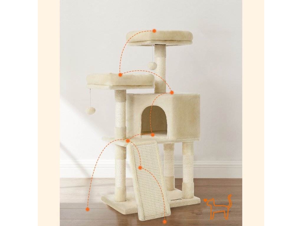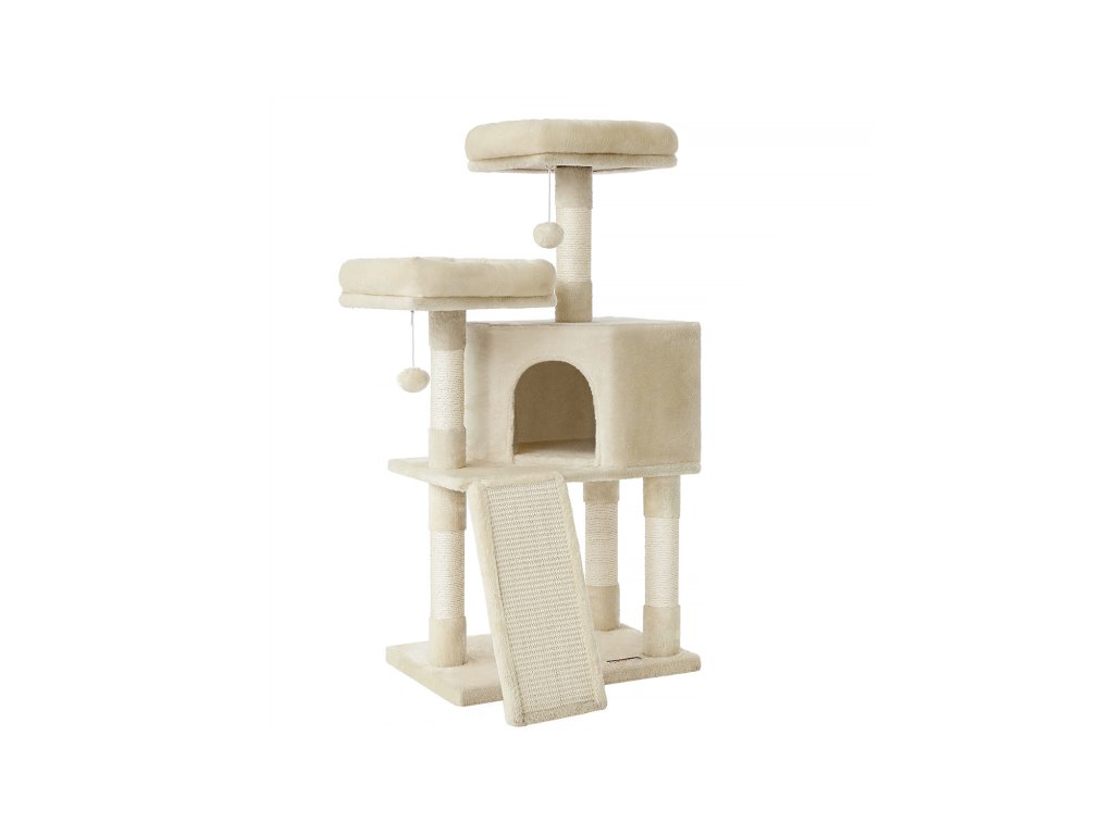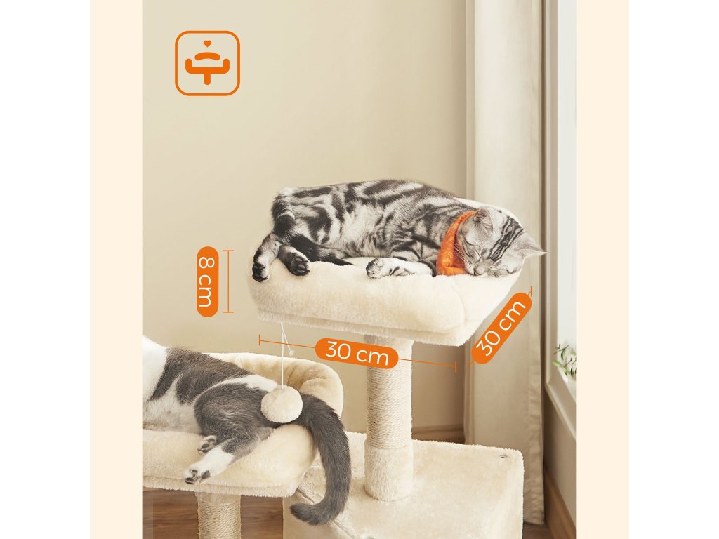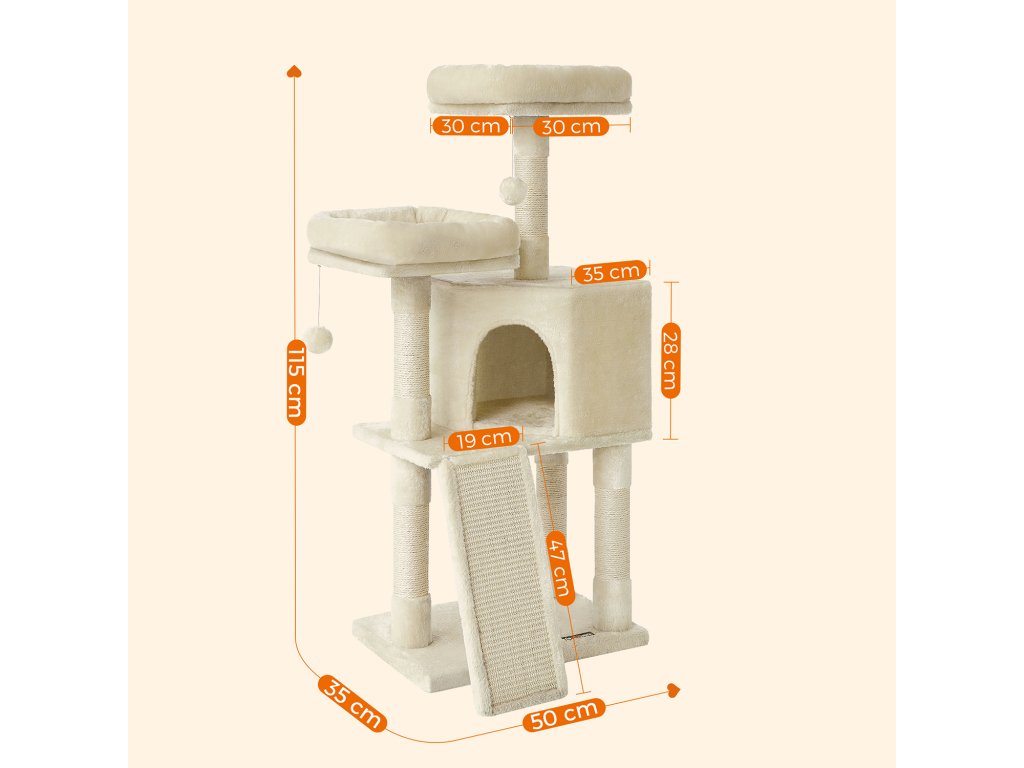 Malé škrabadlo pro kočky se škrabacími plošinami,115 cm plně omotaný sisalový sloupek, béžová.