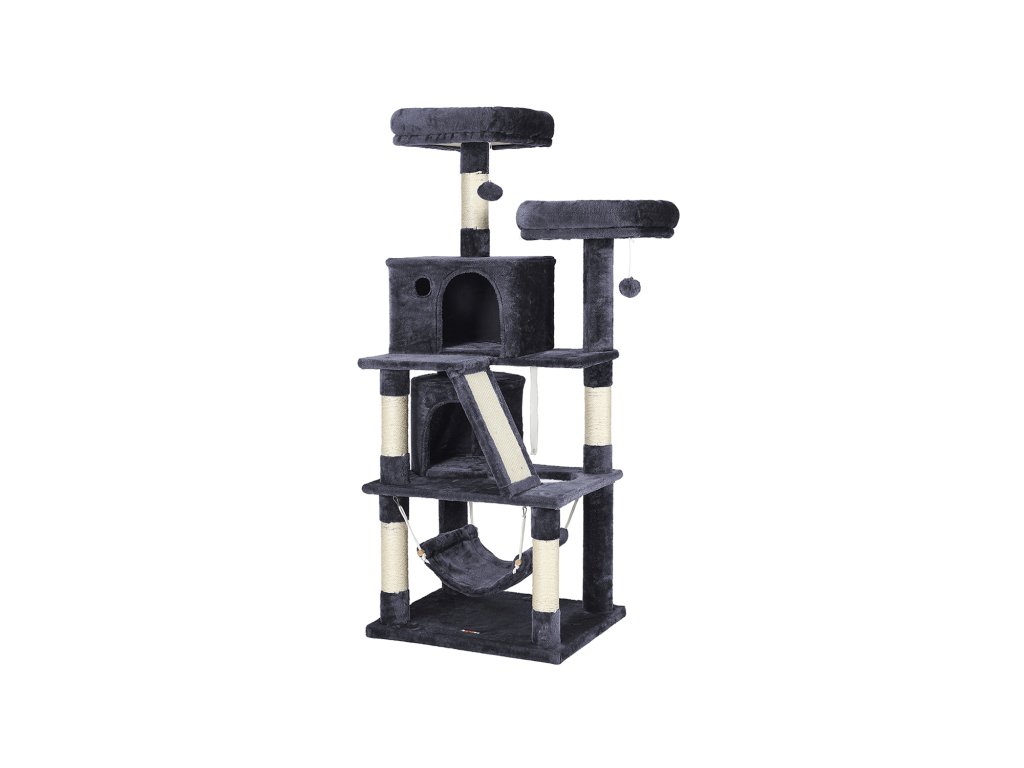 Škrabadlo pro kočky se 2 jeskyněmi, 155 cm, šedá.