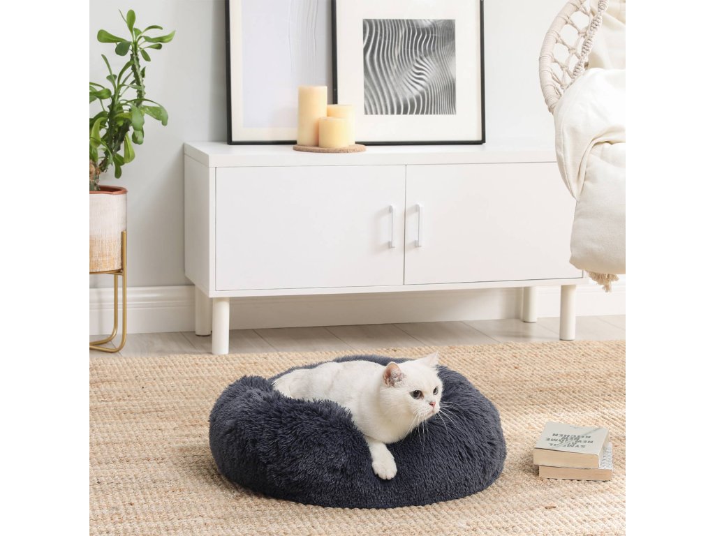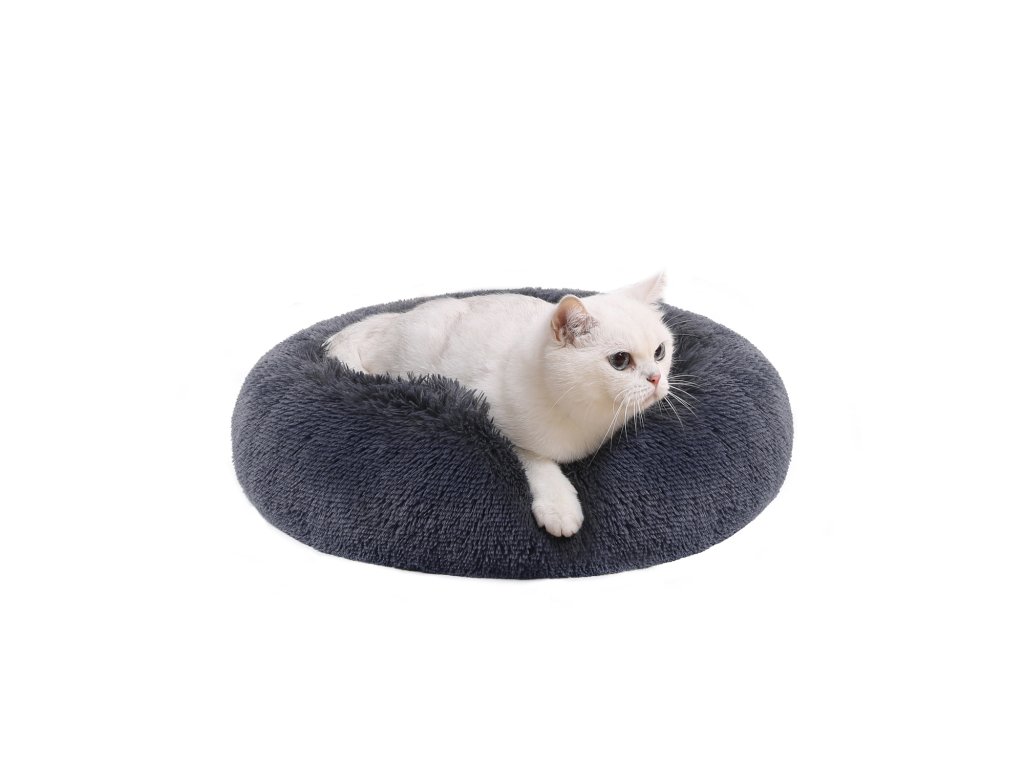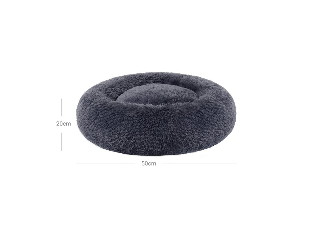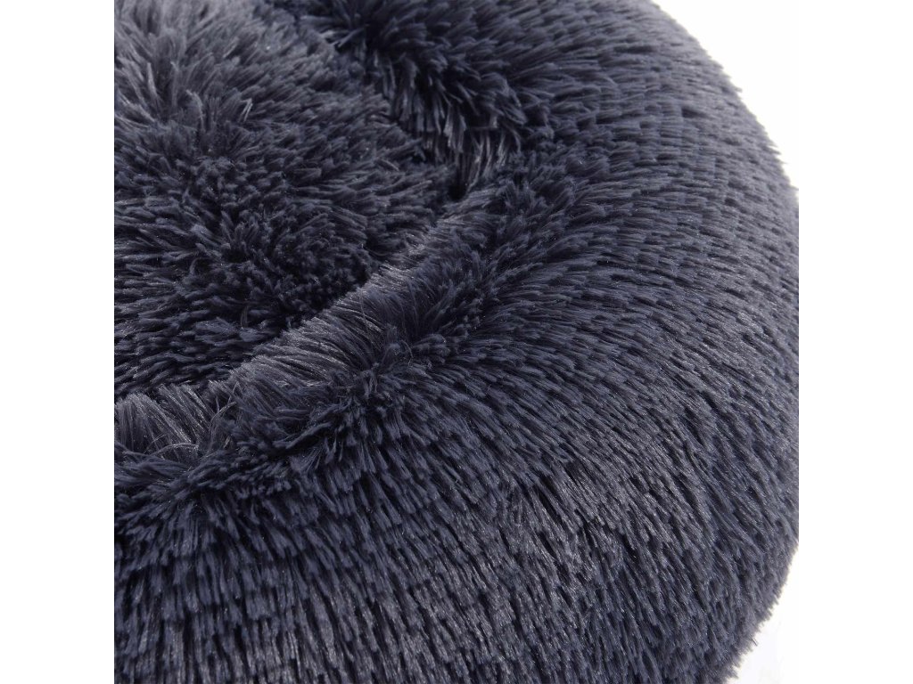 Pelíšek pro psy, Donut Cat Bed, nadýchaný uklidňující pelíšek se snímatelným, pratelným potahem, měkký dlouhý plyš, 50 cm, tmavě šedá.
