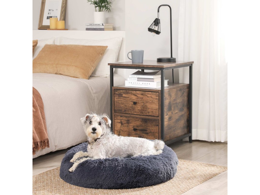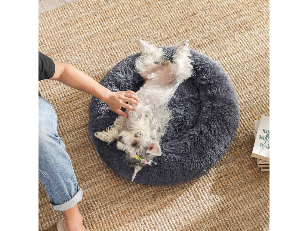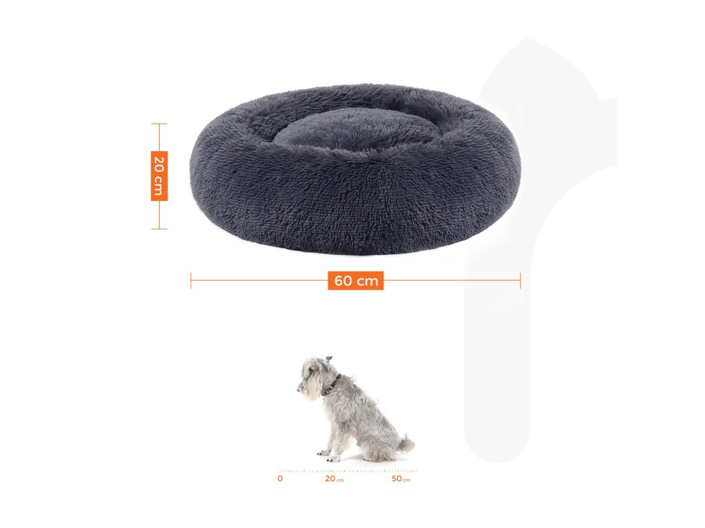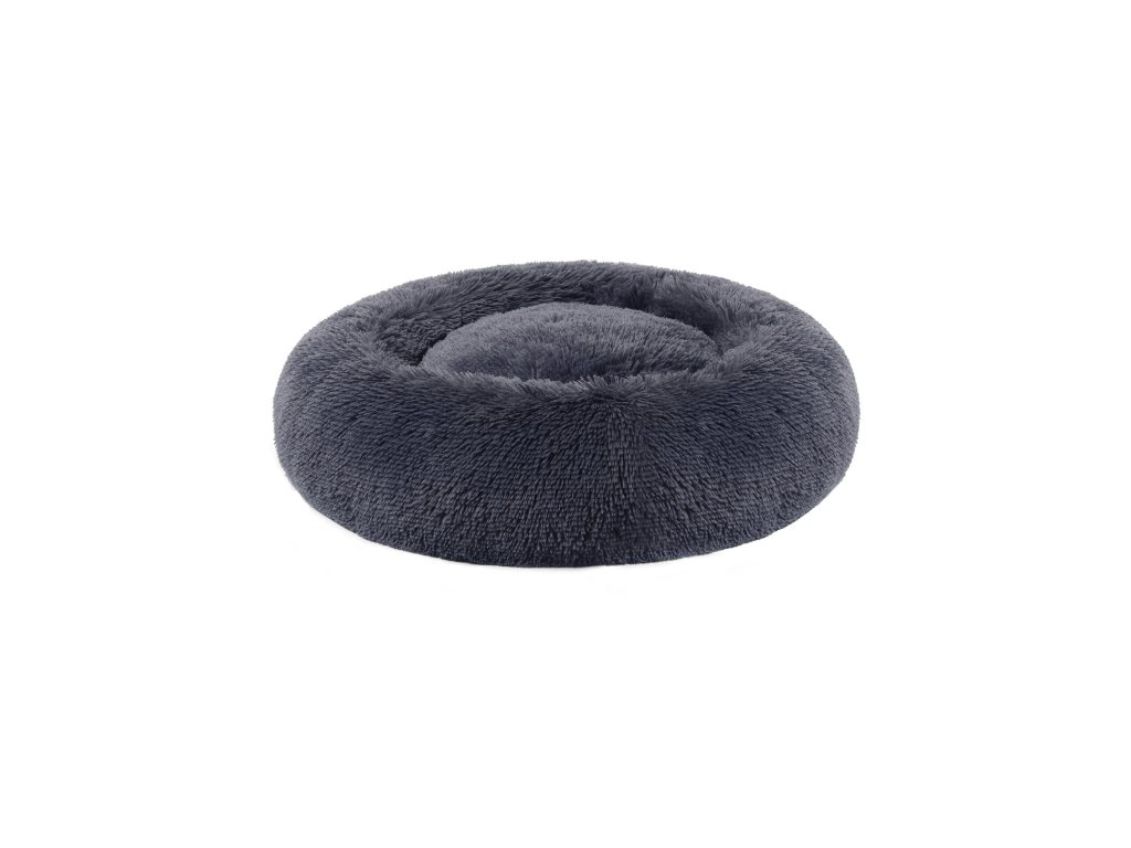 Pelíšek pro psy, Donut Cat Bed, nadýchaný uklidňující pelíšek se snímatelným, pratelným potahem, měkký dlouhý plyš, 60 cm, tmavě šedá.