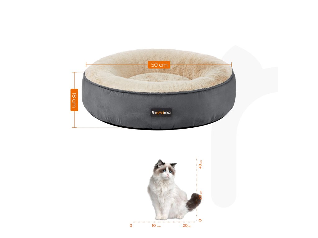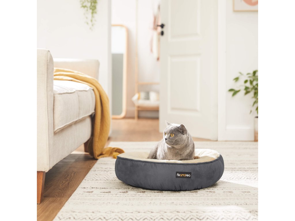 Pelíšek pro psy, Doughnut Cat Bed, kulatý, 50 cm Dia, tmavě šedá.