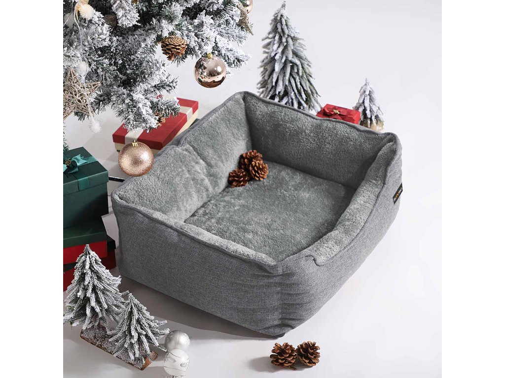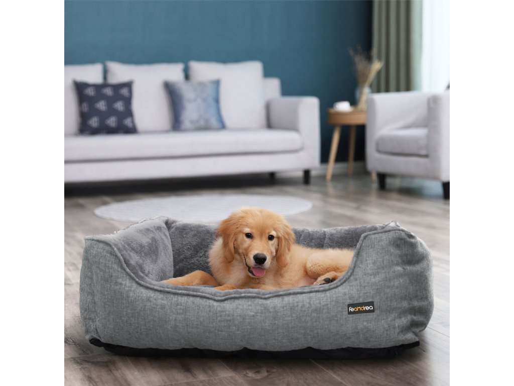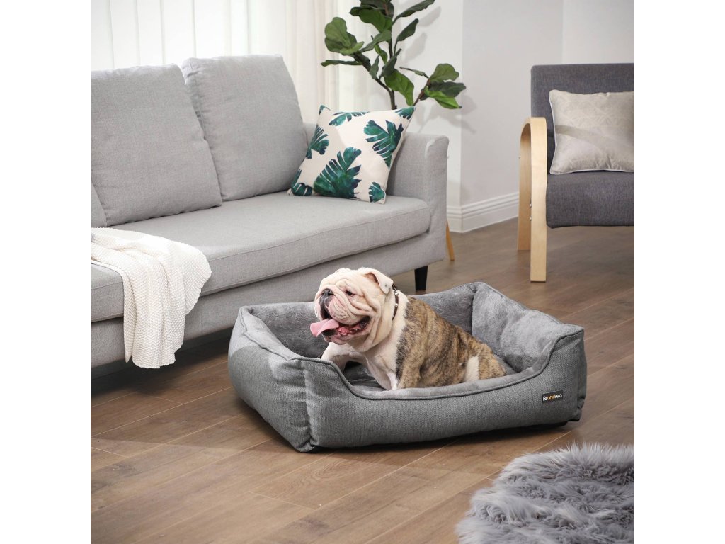 Pelíšek pro psy, lněný pelíšek, rozkládací pelíšek pro psy se zvýšenými okraji, protiskluzové dno, snímatelný pratelný potah, L, pro střední psy, 90 x 75 x 25 cm, světle šedá.