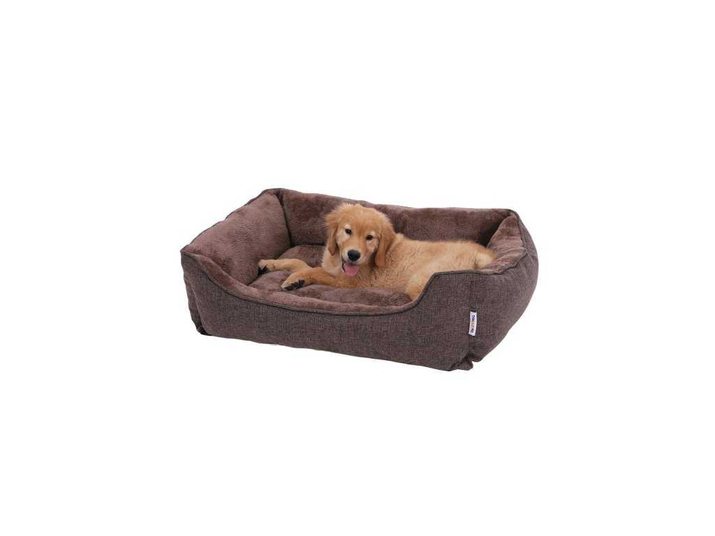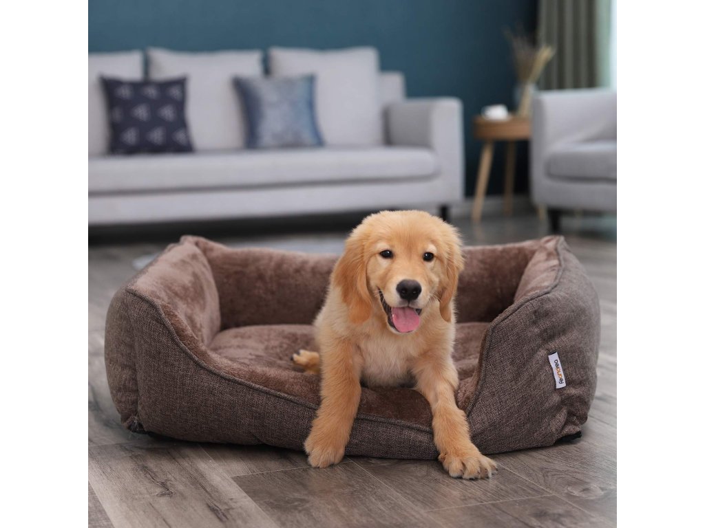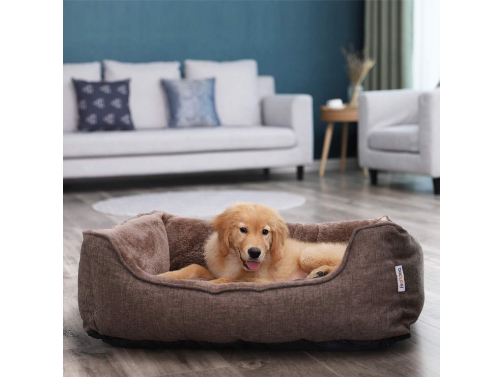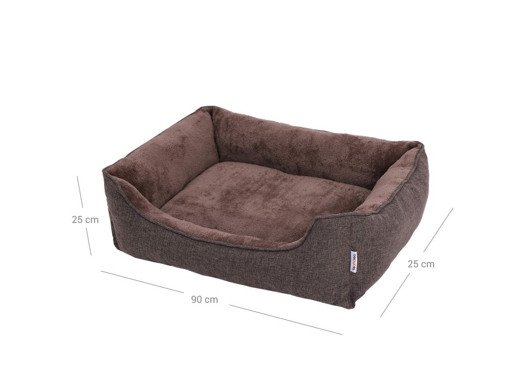 Pelíšek pro psy, pelíšek, pohovka pro psy se snímatelným pratelným potahem, pro střední psy, 90 x 75 x 25 cm, hnědá barva.