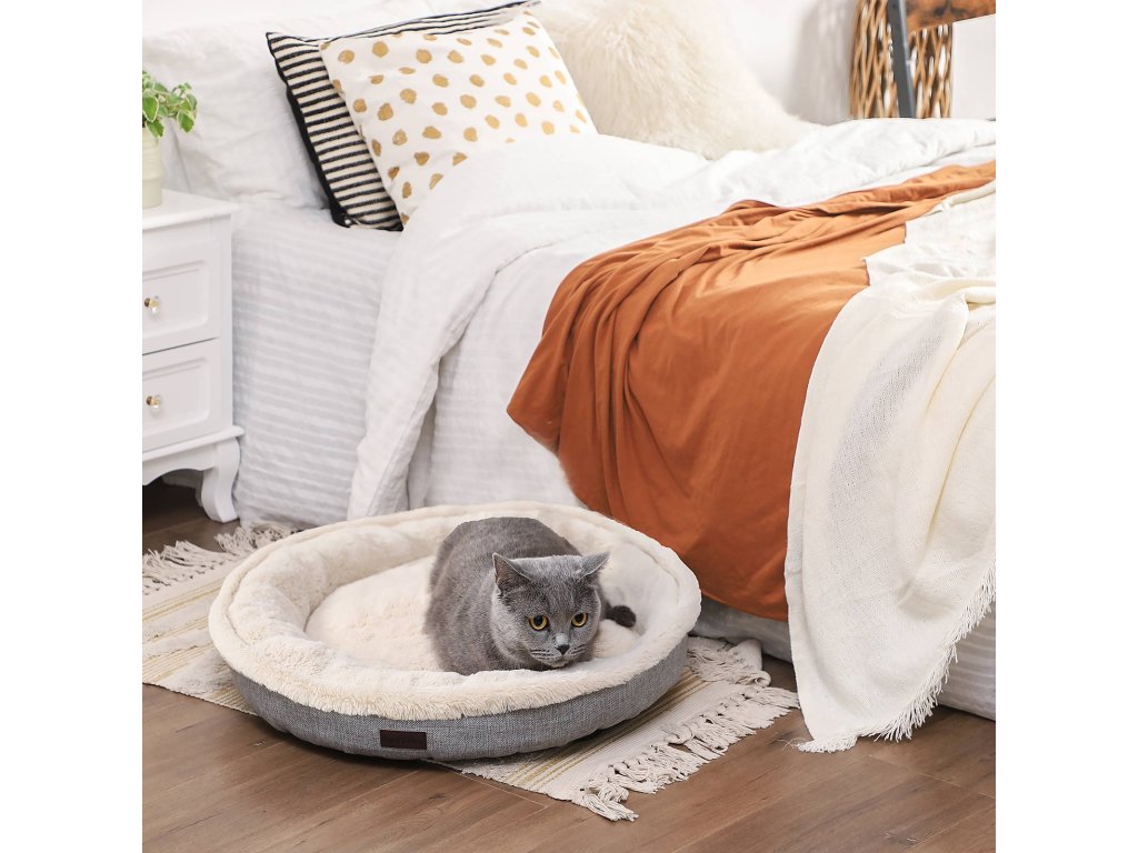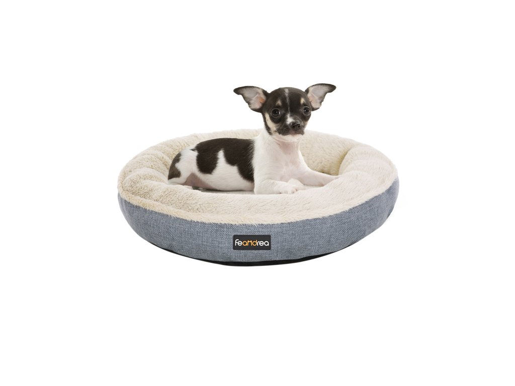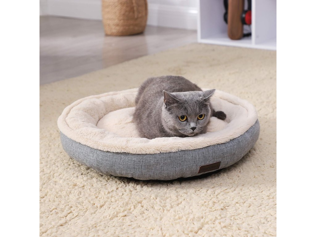 Pelíšek pro psy, pohovka pro psy, pelíšek pro kočky, tvar donutu, kulatý, průměr 55 cm, šedá.
