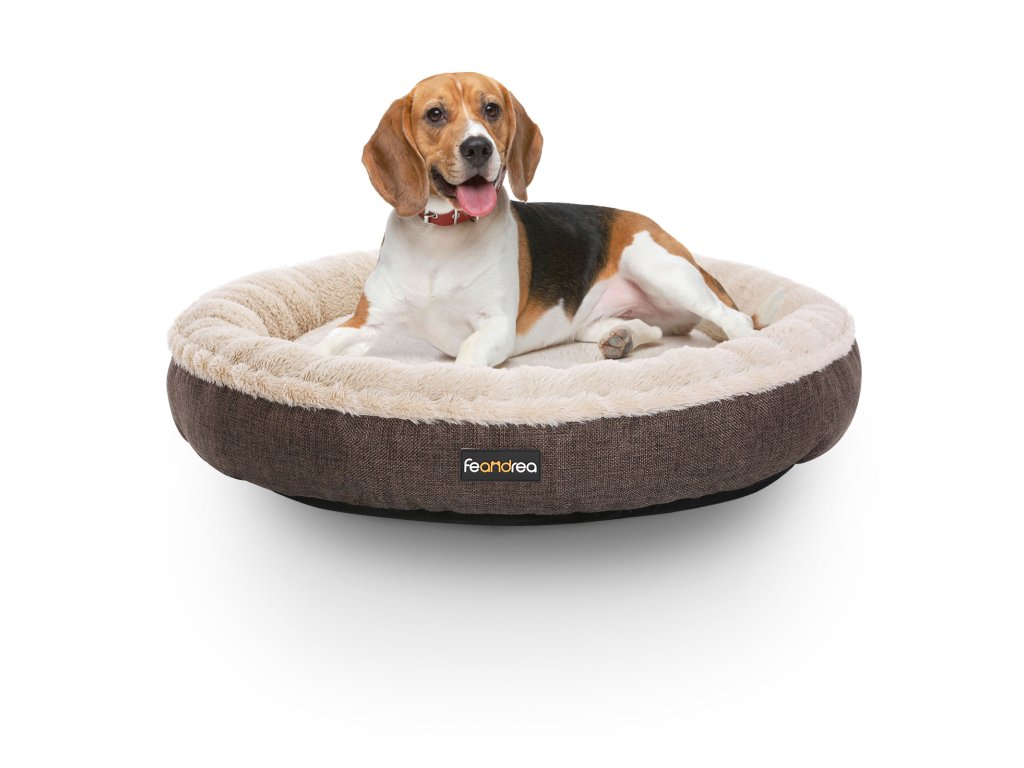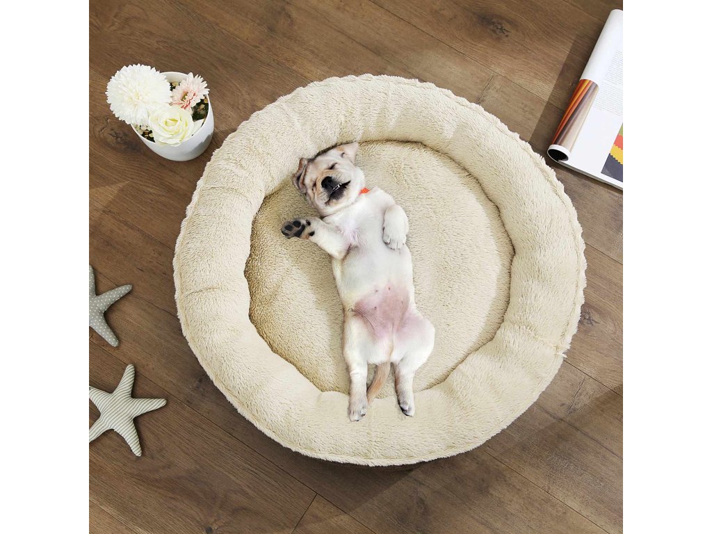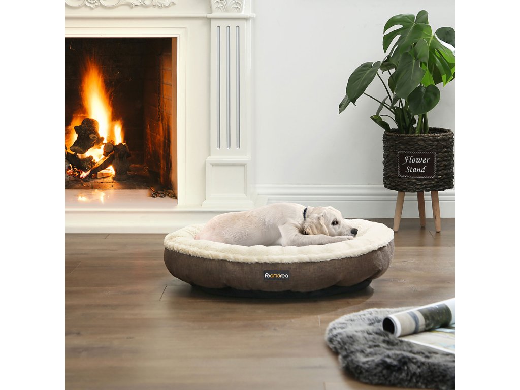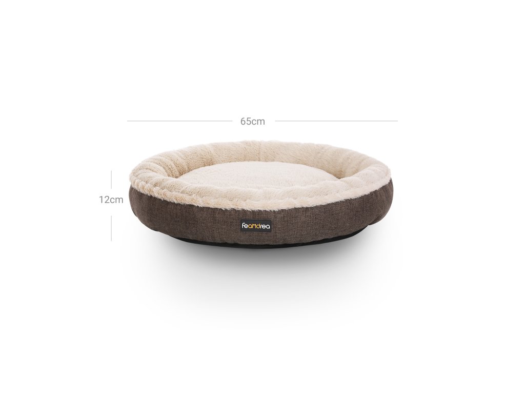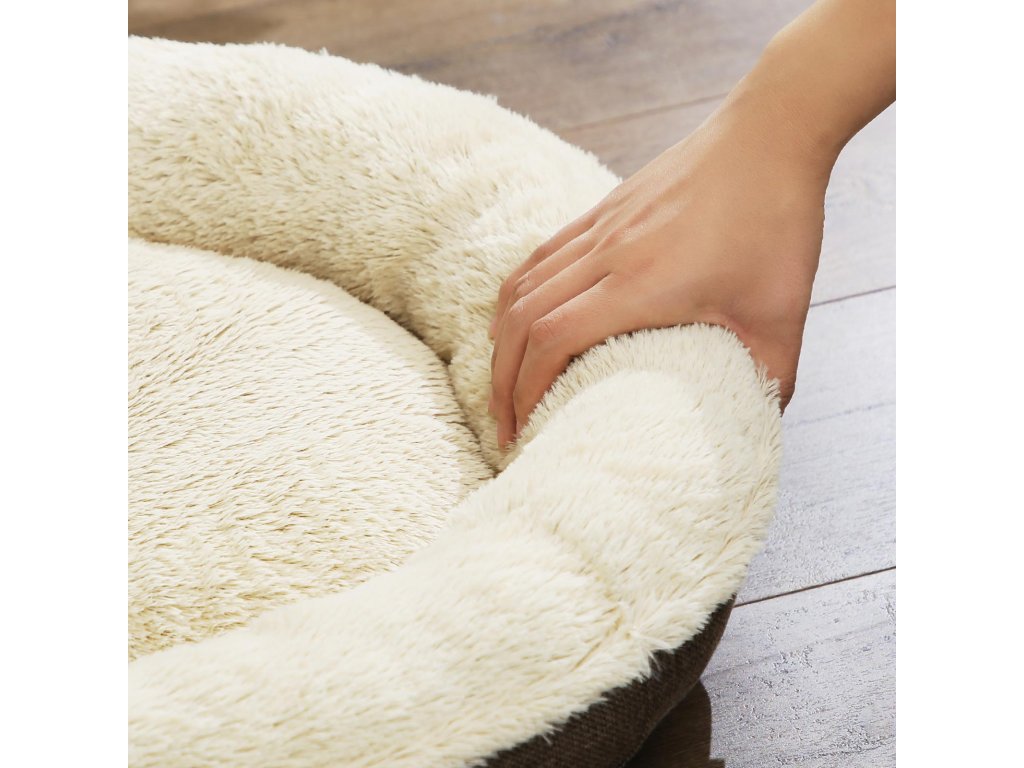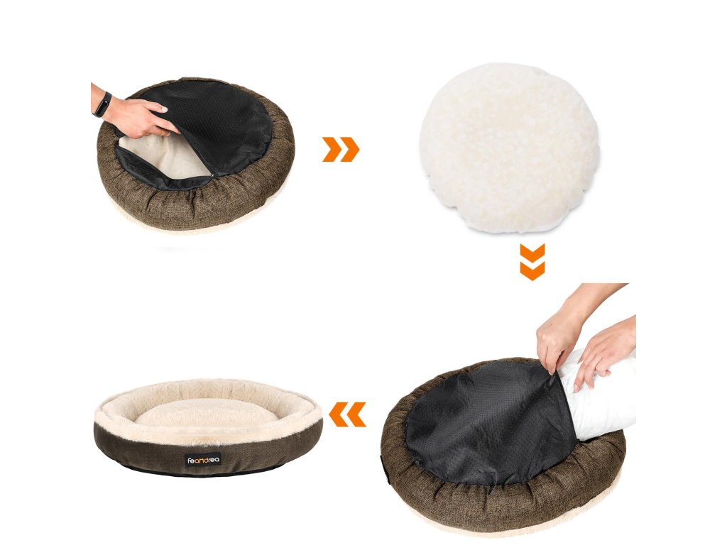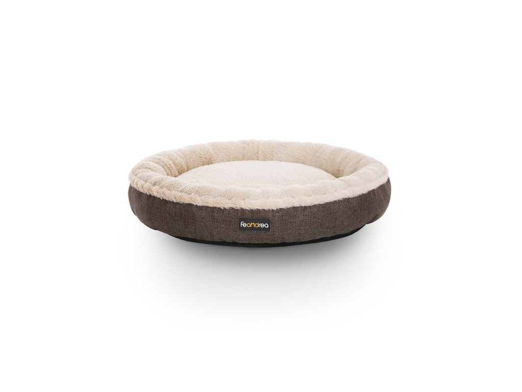 Pelíšek pro psy, pohovka pro psy, pelíšek pro kočky, tvar donutu, kulatý, průměr 65 cm, hnědá.