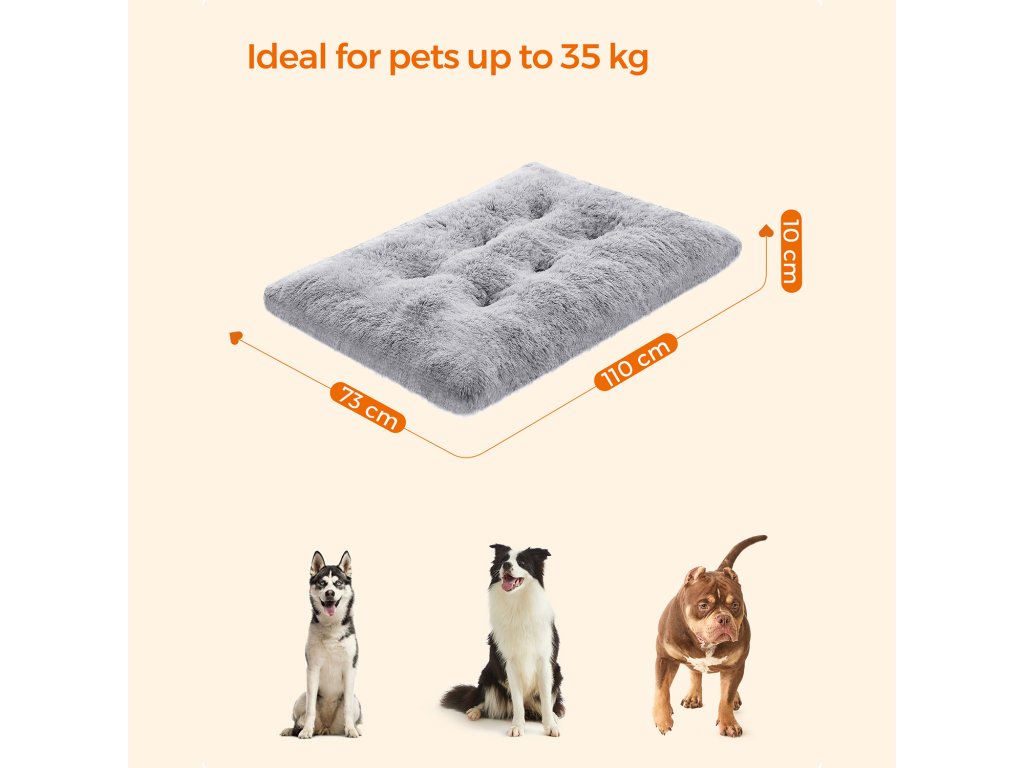 Pelíšek pro psy, polštář pro psy, huňatá podložka pro psy, dlouhý plyš, 110 x 73 cm, měkká výplň, pratelný v pračce, koš pro psy, multifunkční, přenosný, světle šedá.