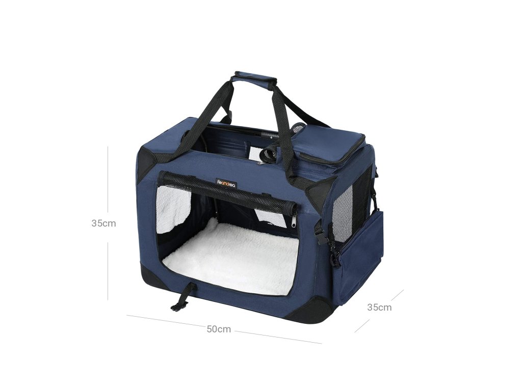 Určete správnou velikost Box pro psy (50 x 35 x 35 cm) je vhodný pro psy o hmotnosti do 7 kg. Doporučená plemena: Vhodná velikost: jorkšírský teriér, malý mops, čivava. Správný způsob měření naleznete v návodu.Přenosný a skladný: přepravní box pro kočky se snadno přepravuje díky praktickým držadlům. Když jej nepoužíváte, můžete jej složit na plocho (rozměry ve složeném stavu: 50 x 35 x 8 cm) a uložit do zavazadlového prostoru nebo do rohu.Vhodný pro různé scénáře: přepravní box pro psy nabízí vašemu čtyřnohému příteli bezpečné místo. Tento skládací box pro psy můžete použít při kempování, na zadním sedadle auta během výletu, v hotelu nebo doma.Více otvorů a prodyšná síťovina Okno ze síťoviny, prostorný interiér - Váš chlupatý přítel si může užívat čerstvého vzduchu i v kočičím boxu a může se mezi tím dívat ven. aby se necítil osamělý nebo omezený.Bezpečný, pohodlný, praktický Přenosná taška pro psa je vyrobena z ocelového rámu a odolné tkaniny Oxford a uvnitř má snadno udržovatelnou plyšovou podložku - stabilní a útulné útočiště pro vašeho psa. Občerstvení, obojky atd. se vejde do 2 bočních kapes.| Kategorie: | Ostatní potřeby pro cestování se psem |