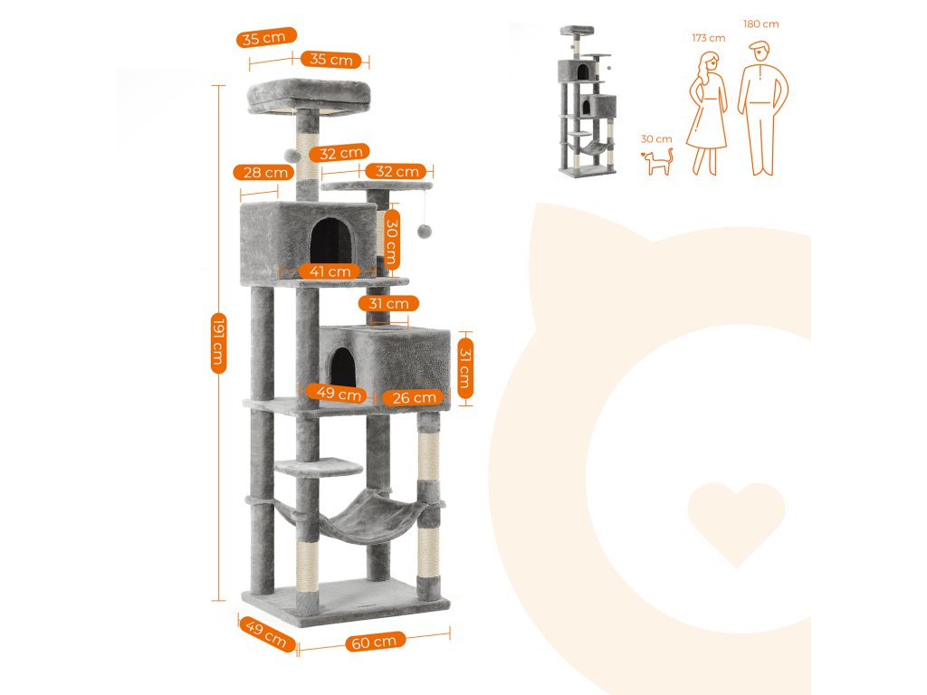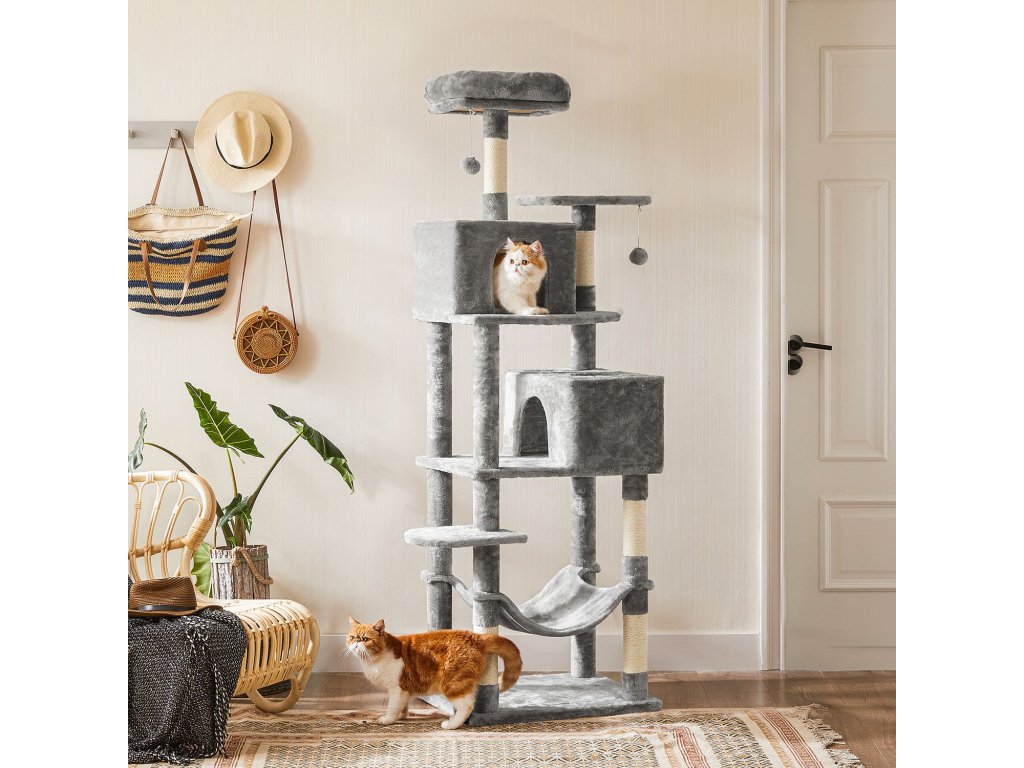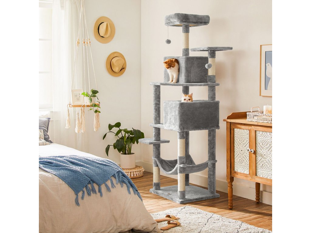 Velká výška, velká radost: Tento kočičí strom je vysoký 191 cm a plně využívá vertikální prostor k vytvoření ráje pro šplhání, škrábání a odpočinek vašich koček. Navíc vaše kočky mají dokonalý výhled a mohou sledovat, co se u vás doma děje.Útulný den i noc: Vaše kočka zná všechna útulná místečka!Spolehlivá stabilita: Máte energickou kočku? Žádný problém. Díky zesílené základně a sadě proti převrácení je tato věž pro kočky bezpečná a stabilní, aby mohly skákat nahoru a dolů. Nechte své chlupáče řádit podle libosti!.Zachraňte svou pohovku: Díky sisalovým škrabadlům si vaše kočky konečně mají kde brousit drápky! Vaše pohovka je nyní v bezpečí a kočky i pohovka vám za to poděkují!Udělejte svým přátelům radost: Kočky si mohou hrát a odpočívat v pohodlí, když jste pryč: Rozmazlujte své kočky tímto domkem pro kočky, aby se necítily osamělé, když jste pryč, a nechte je hrát si a odpočívat v pohodlí.| Kategorie: | Škrabadla pro kočky |