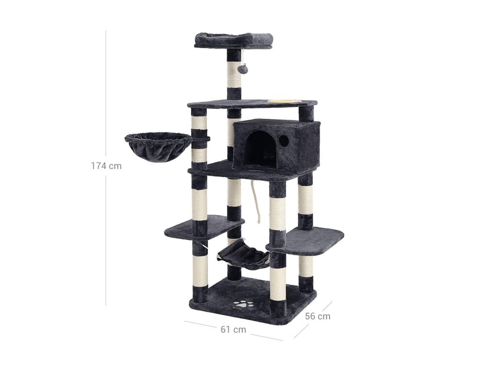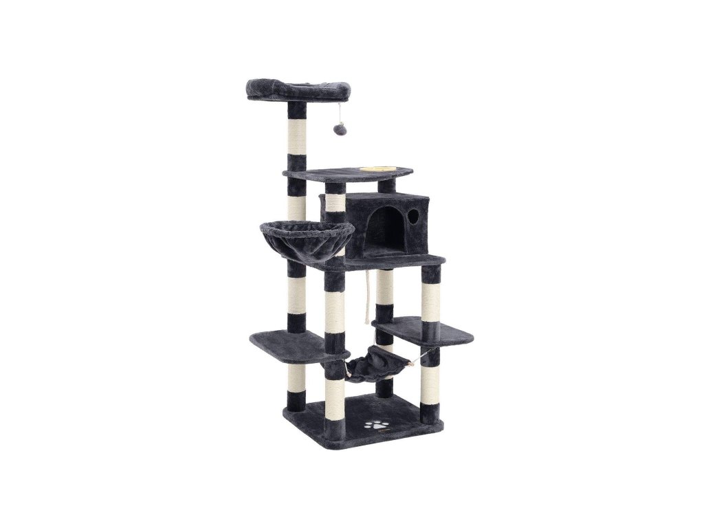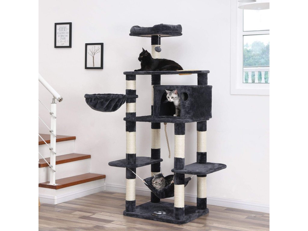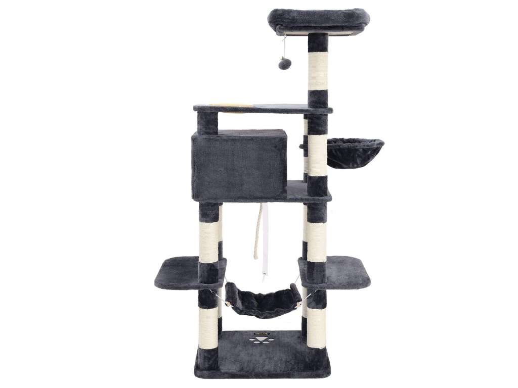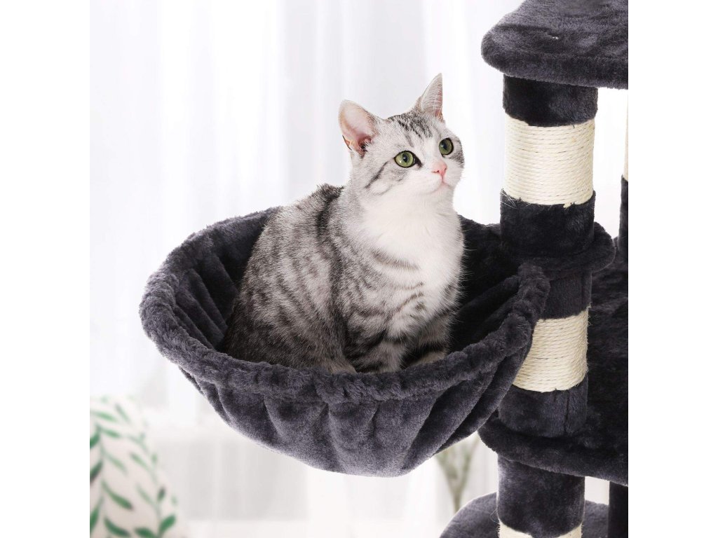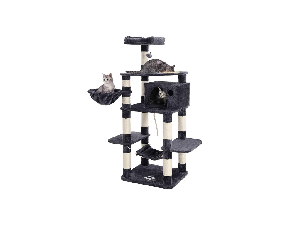 Strom pro kočky, hrací věž 164 cm, kouřově šedá.