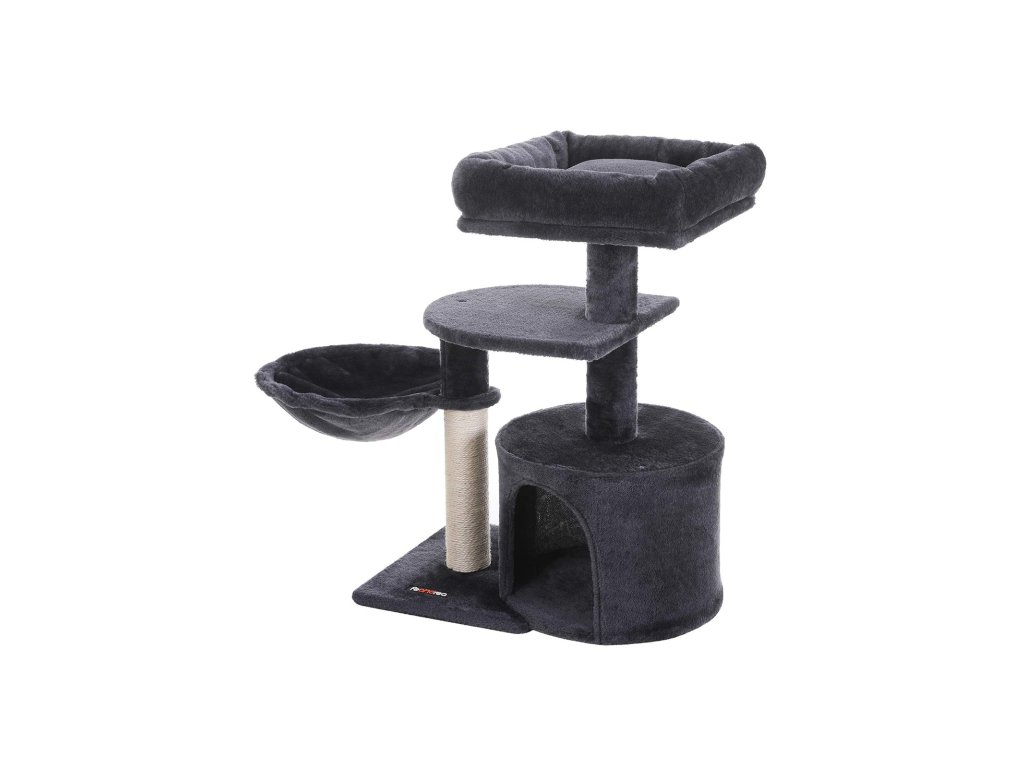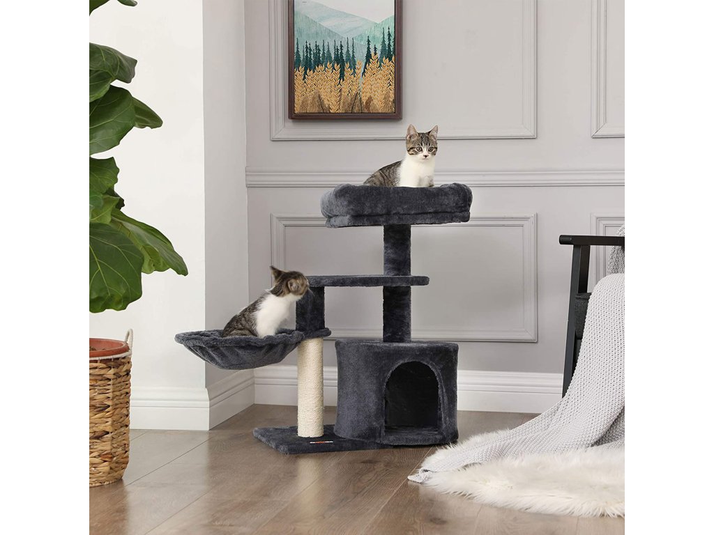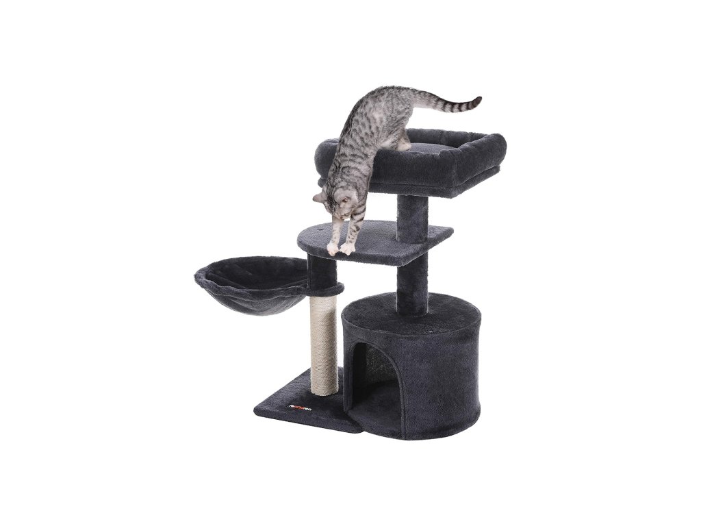 Strom pro kočky, malá věž pro kočky, škrabadlo pro koťata, kouřově šedá.