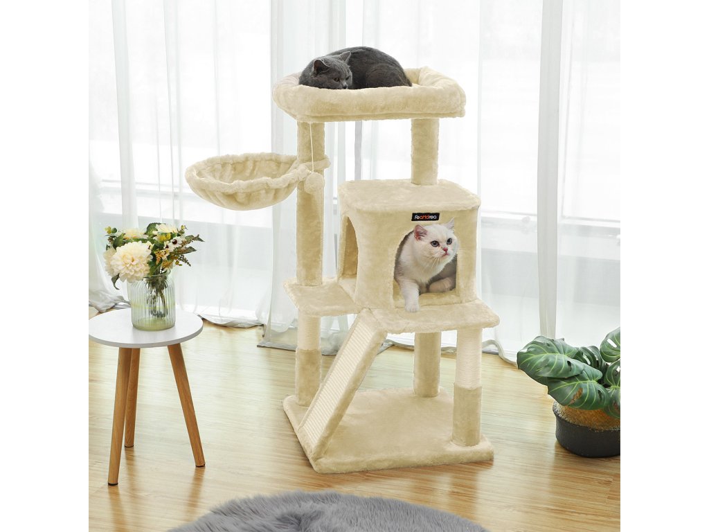 Strom pro kočky, věž pro kočky, rozšířené bidýlko pro velké kočky, béžová.