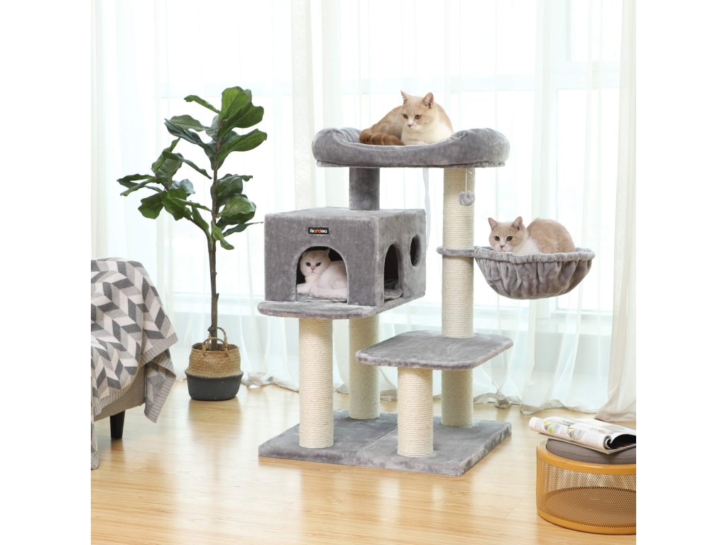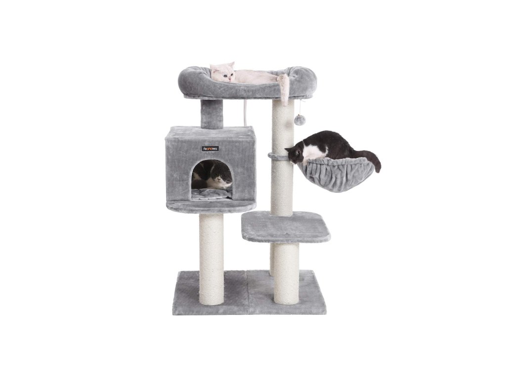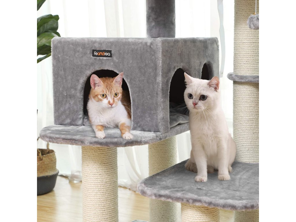 PROSTORNÝ KOČIČÍ DŮM HLEDÁ NOVÉHO MAJITELE: Zařízený extra velkým plyšovým bidýlkem, prostornou jeskyní a hlubokým lehátkem je vysněným domovem pro každého domácího tygra.ZMĚNA SMĚRU: Strom pro kočky můžete nastavit do různých směrů díky pohyblivým základním deskám. Tato prostorově úsporná hračka pro kočky se dokonale přizpůsobí podmínkám vašeho domova.STABILNÍ RÁJ: Ať už se u vás doma prohání svalnatá kočka Ragdoll nebo velká kočka Savannah, rádi byste se svými malými hrazdovými umělci hráli na jistotu. Proto je tento kočičí strom vybaven dvouvrstvou základovou deskou a ochranou proti převrácení. Ještě silnější než dříve jsou sisalové sloupky, které navíc zajišťují maximální stabilitu (průměr: 11,3 cm).MĚKKÉ PELÍŠKY PRO KOČKY: Po procházce po zahradě je pro každou kočku požehnáním odpočívat na nadýchaných rohožích plyšového pelíšku nebo mazlící jeskyně. Také extra hluboké lehátko nabízí nejvyšší pohodlí.100% ZÁRUKA SPOKOJENOSTI: FEANDREA vám poskytuje profesionální zákaznický servis před i po nákupu; nečekejte déle a přidejte si tento produkt do svého domova ještě dnes.| Kategorie: | Škrabadla pro kočky |