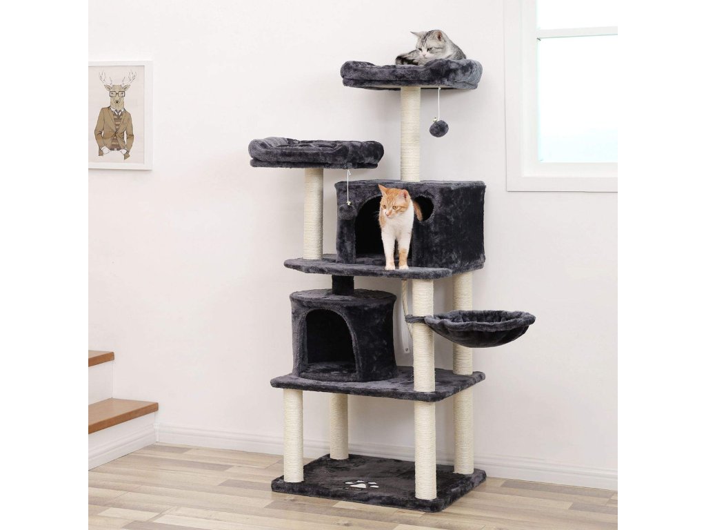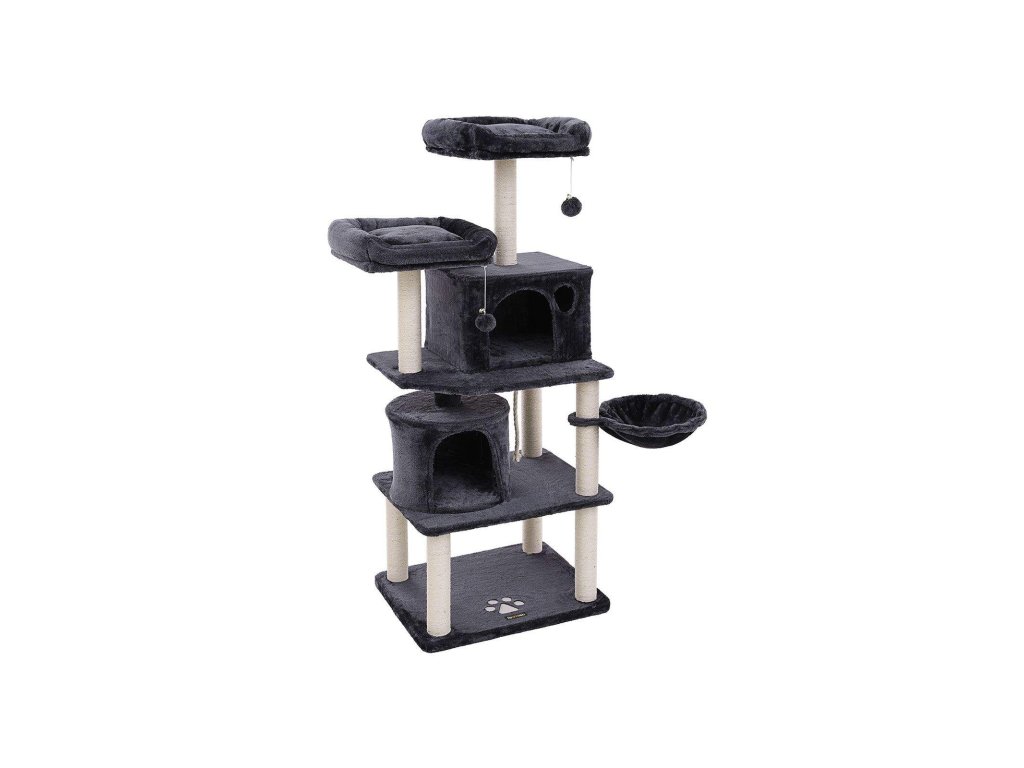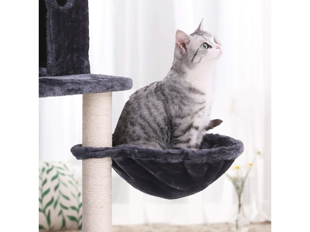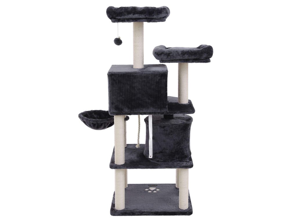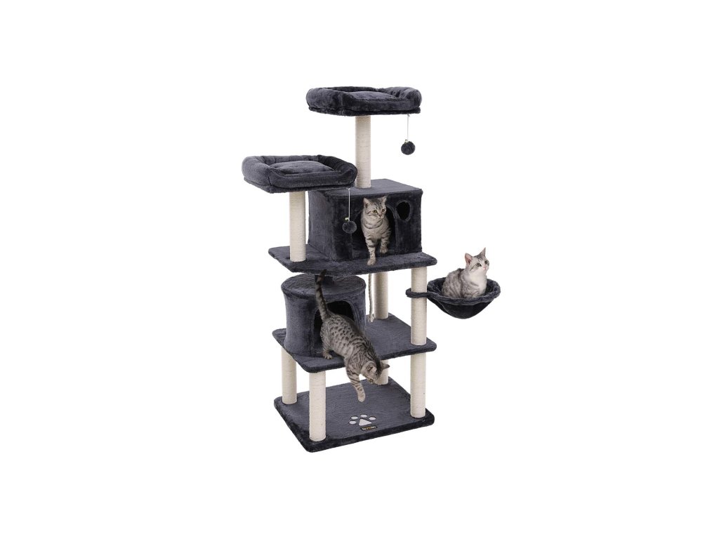 Strom pro kočky, vysoká věž pro kočky, 2 jeskyně, kouřově šedá.