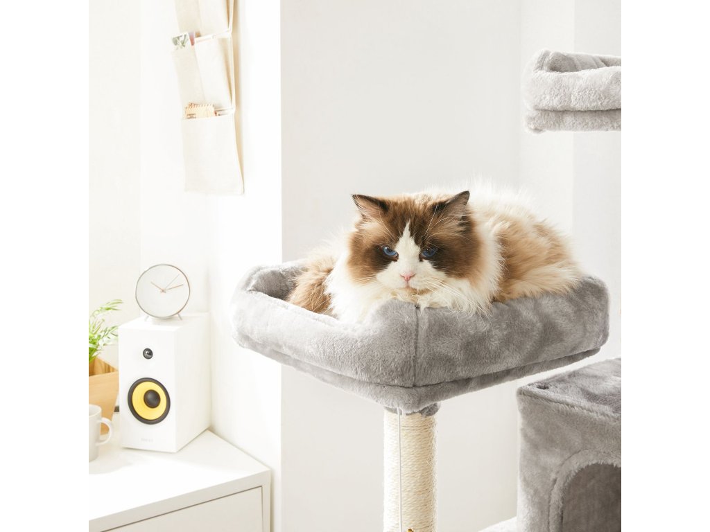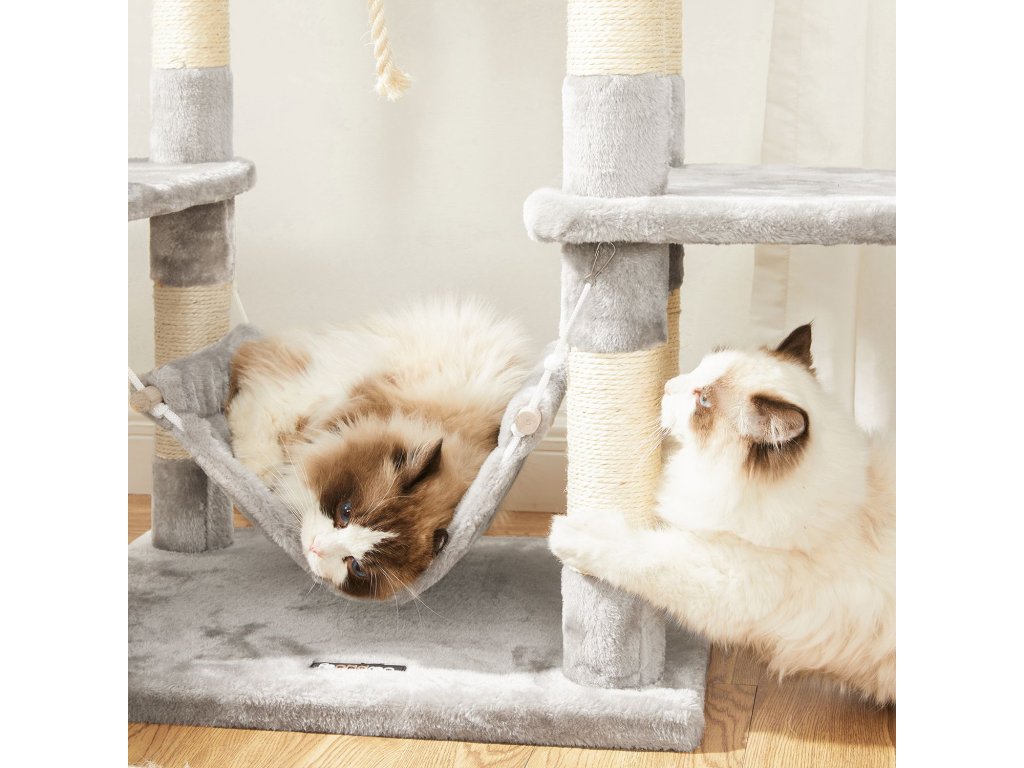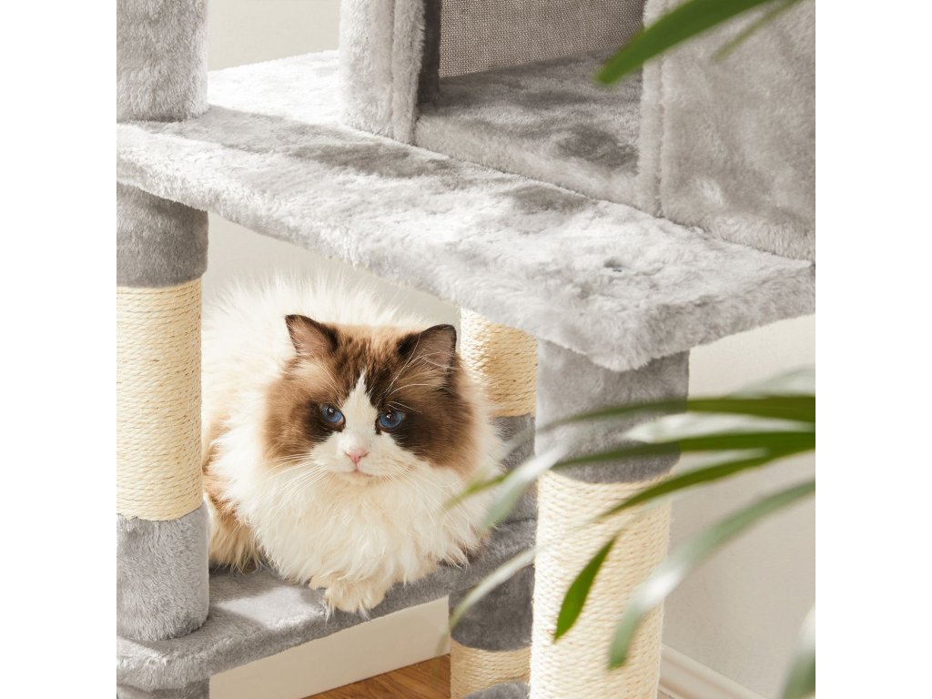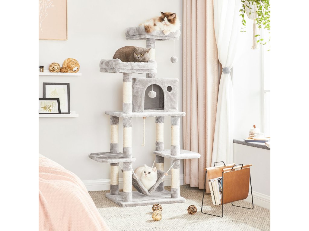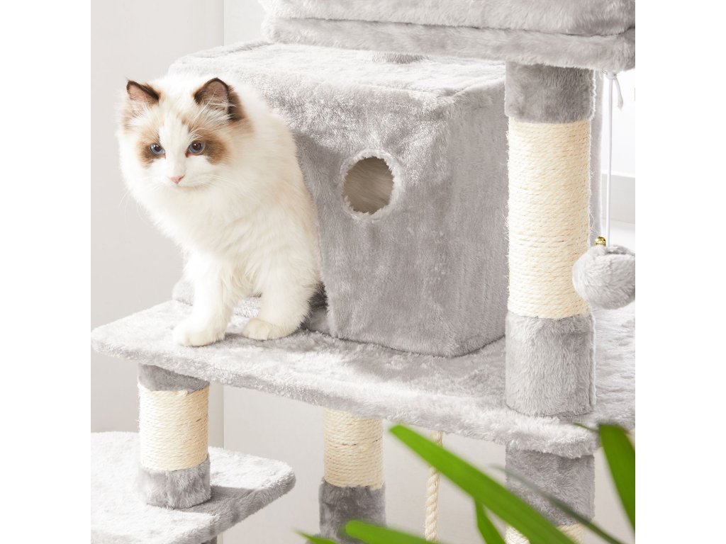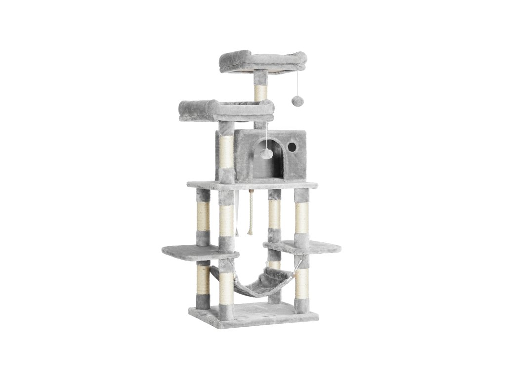 Strom pro kočky s bambulkami, věž pro kočky 150 cm, světle šedá.