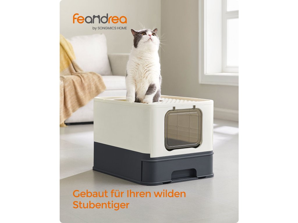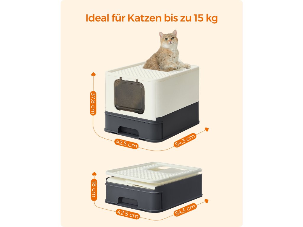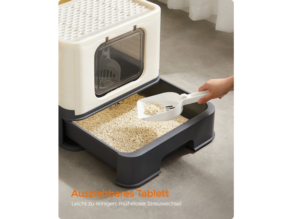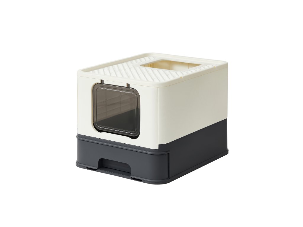 Uzavřený box na stelivo pro kočky, 54.3×42.5×37.8cm, bílý Skládací výsuvný box na kočičí stelivo