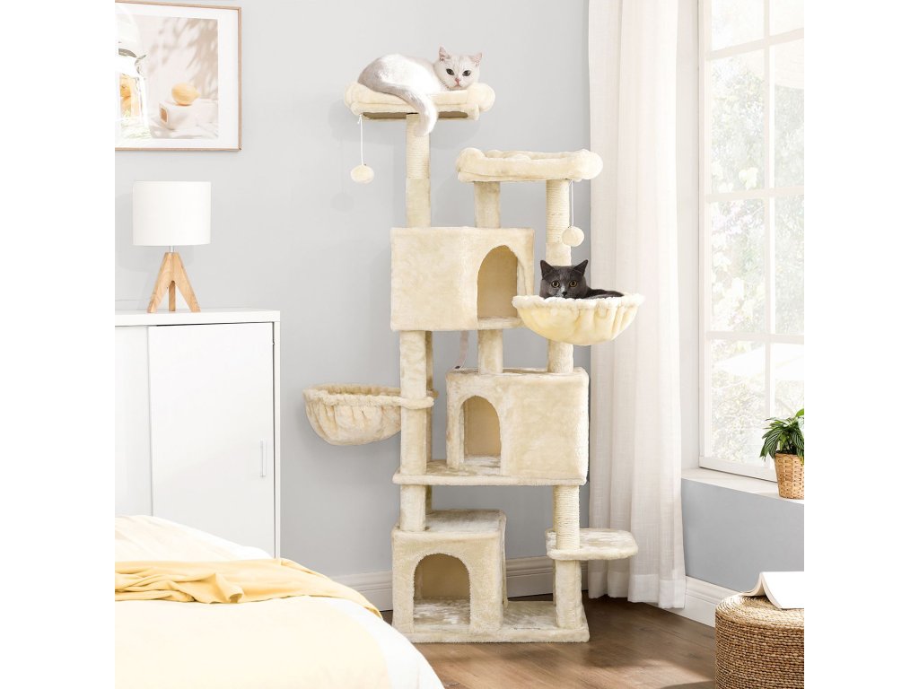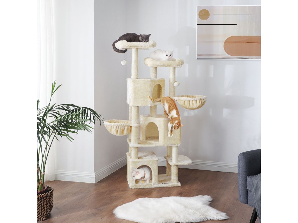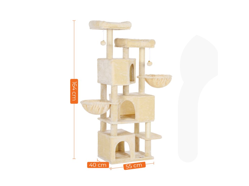 Velký kočičí strom se 3 jeskyněmi pro kočky, 164 cm, béžová.