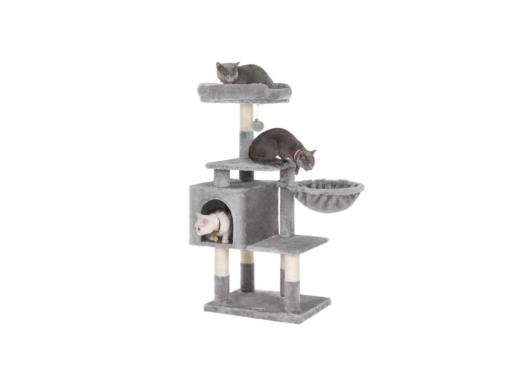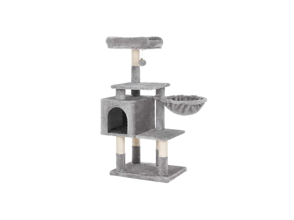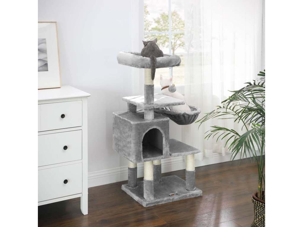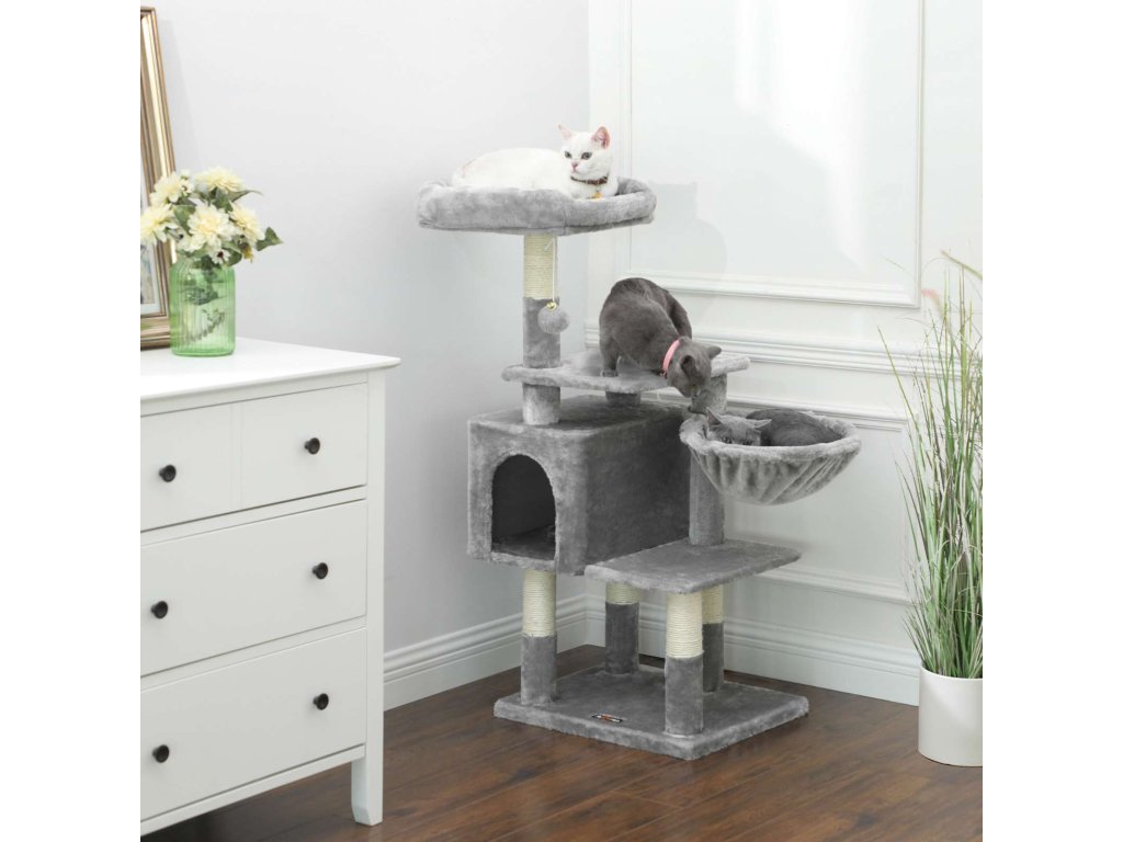 Víceúrovňový strom pro kočky, 110 cm věž pro kočky, Cat Condo, světle šedá.
