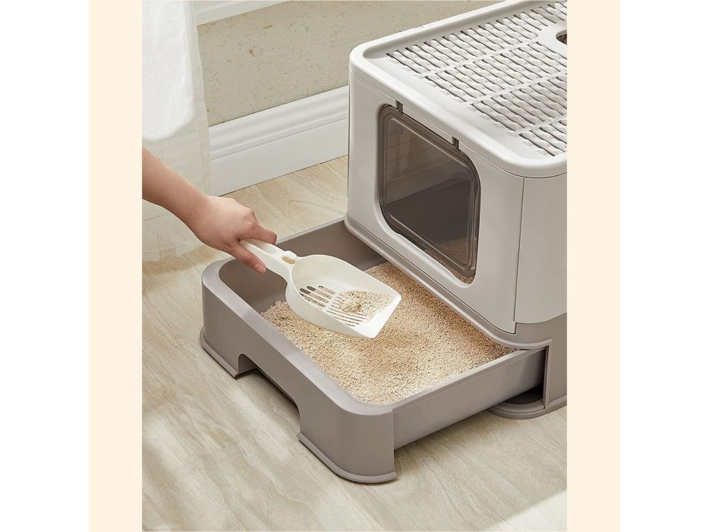 Zásobník na kočičí stelivo, 54.3x42.5x37.8cm, šedý Skládací výsuvný box na kočičí stelivo
