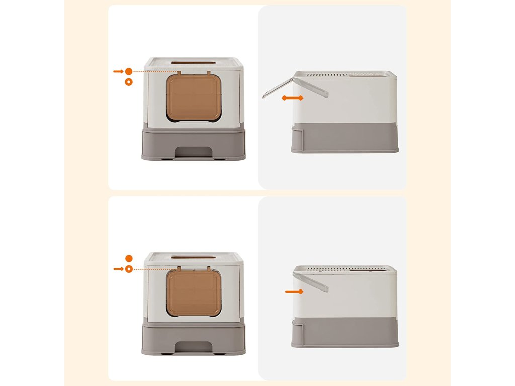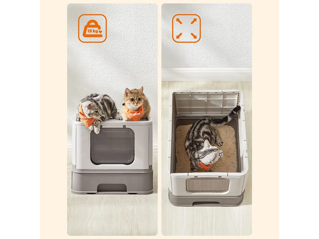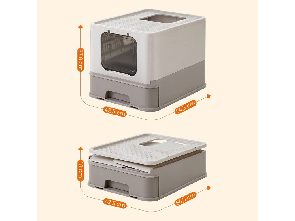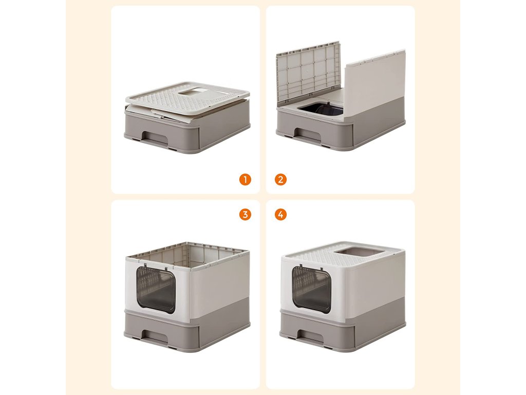 Snadné vyprazdňování a čištění: tento zásobník na kočičí stelivo je vybaven výsuvnou zásuvkou, která usnadňuje jeho vyprazdňování a plnění novým stelivem. Díky tomu je čištění zásobníku na stelivo hračka.Méně nečistot: mřížka v horní části snižuje tvorbu stop a umožňuje, aby stelivo padalo zpět do boxu. Rozšířený okraj nad boxem a uzavřené dno pod ním zabraňují pronikání steliva nebo kočičí moči na podlahu.NASTAVENÍ ZA 5 MINUT - NEPOTŘEBUJETE NÁŘADÍ Díky skládacímu designu a snadným pokynům je nová kočičí toaleta pro vašeho přítele připravena za 5 minut nebo méně.