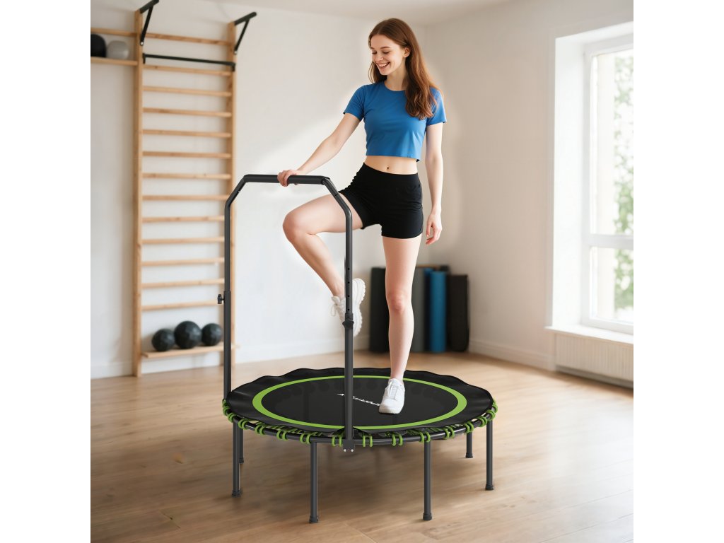 Hledáte bezpečné a pohodlné cvičení bez nepořádku v domácnosti? Mini trampolína je řešením. Její 5polohové nastavitelné madlo zajišťuje stabilitu a zvyšuje sebevědomí pro začátečníky i seniory. Užijte si cvičení s nízkou zátěží s 32 odolnými bungee lany. Tato skládací fitness trampolína bez námahy promění jakýkoli prostor ve vaši osobní posilovnu.