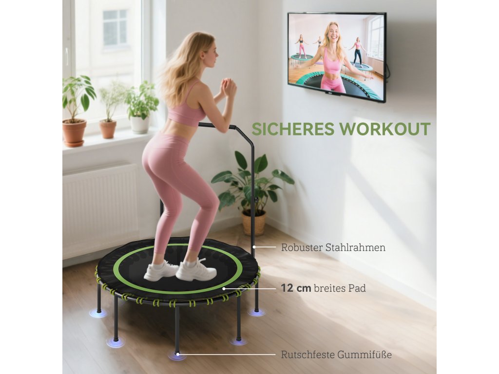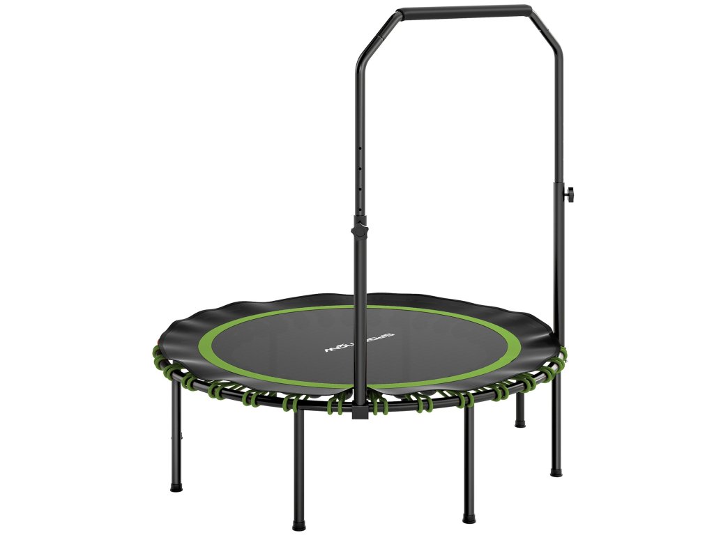 Nastavitelné madlo: Optimalizujte si zážitek z mini trampolíny s 5stupňovým madlem, které poskytuje větší stabilitu a bezpečnost, zejména pro začátečníky a seniory, a zvyšuje sebevědomí s každým skokem. Madlo lze také v případě potřeby odejmout.