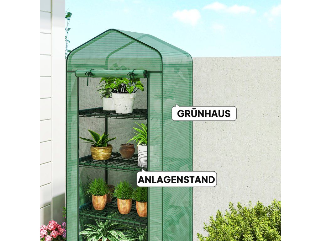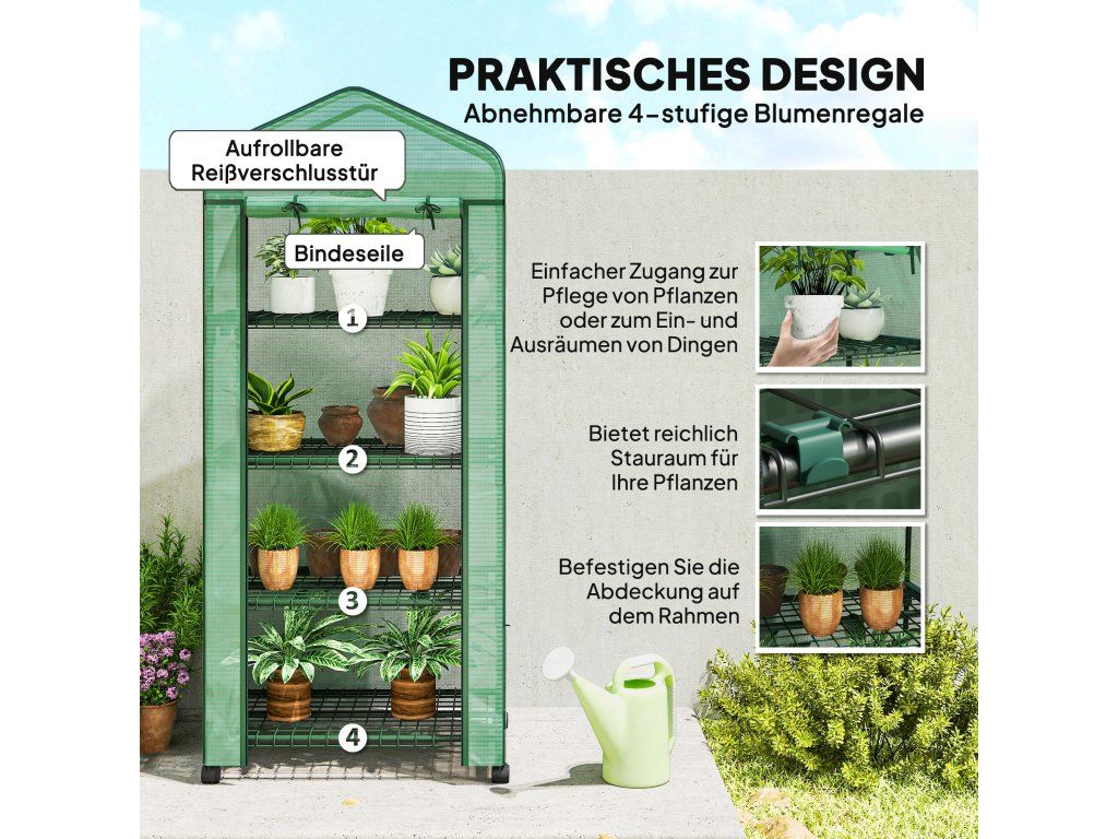 S policemi na rostliny: Polytunelový skleník je vybaven 4 policemi (výška každé police: 33 cm, každá s maximální nosností 15 kg), takže si můžete rostliny uspořádat prostorově úsporným a přehledným způsobem.