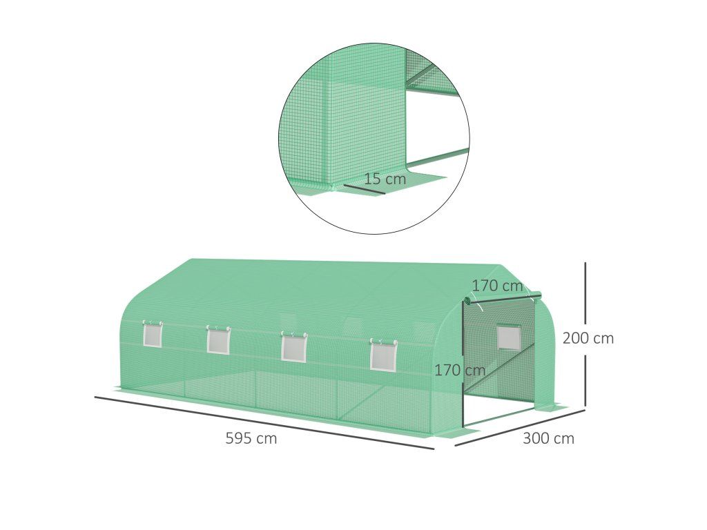 Fóliový skleník se sedlovou střechou 595 x 300 x 200 cm | zelený