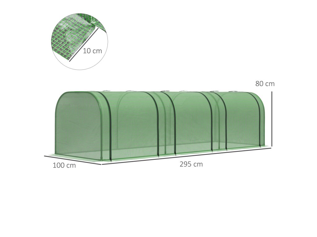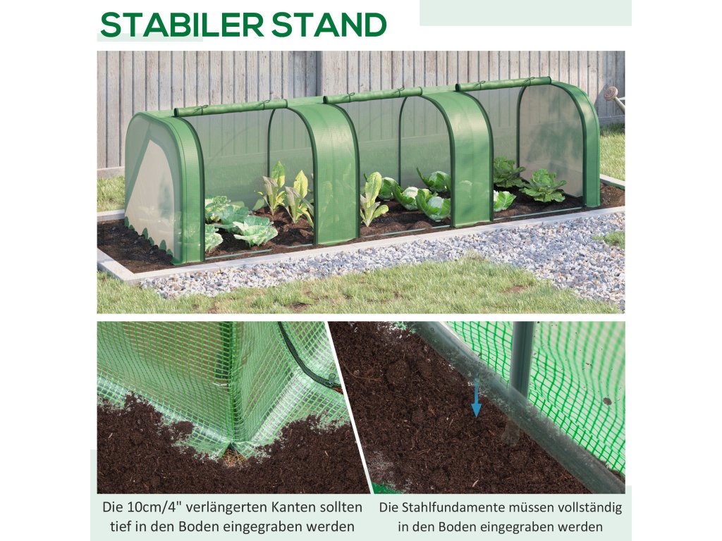 Stabilní a odolná konstrukce: Pevný ocelový rám s práškovým nástřikem je pokryt průhlednou plastovou fólií, která chrání vaše rostliny před chladem. Kryt má převislý okraj, který lze zapíchnout do země pro zvýšení stability a udržení krytu pevně uzavřeného.