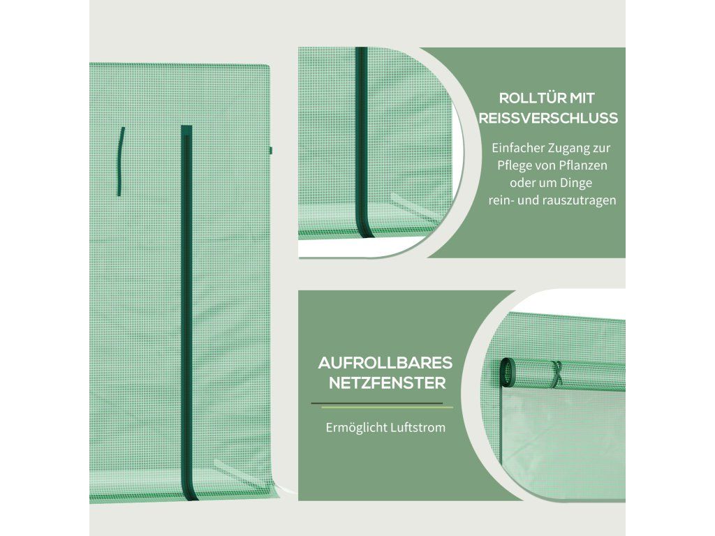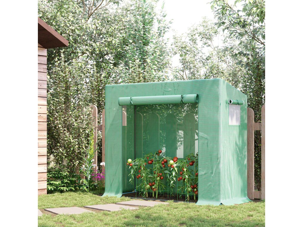 Zahradní fóliový skleník s rolovacími dveřmi a okny 200 x 76 x 168 cm | zelený