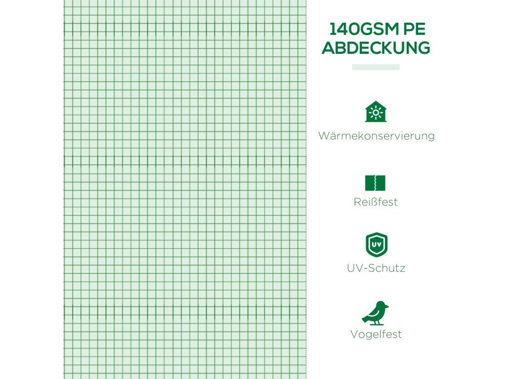 Tento přenosný skleník je ideální pro zahradnické nadšence, kteří hledají způsob, jak zahradničit po celý rok. Skleník poskytuje lepší ochranu pro vaše rostliny a zeleninu. Četná okna síťovaného skleníku zajišťují vynikající větrání a zároveň zabraňují vniknutí zvířat, jako jsou ptáci. Je to ideální řešení pro pěstování rostlin po celý rok.