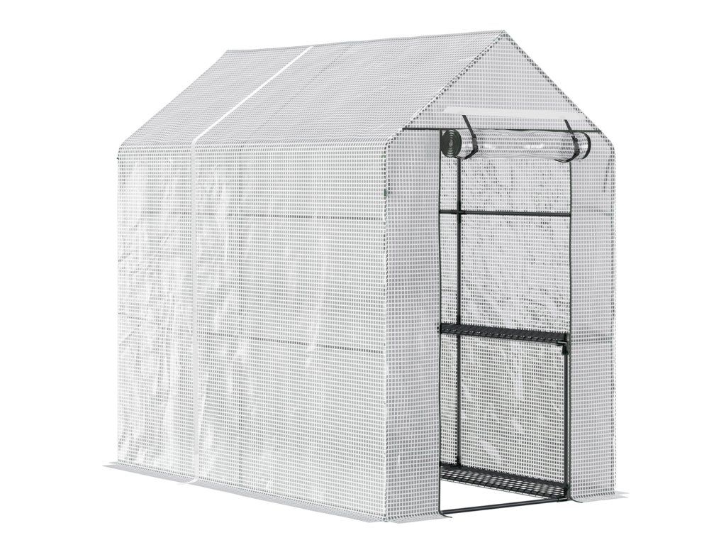 Hledáte způsob, jak pěstovat rostliny po celý rok? Tento skleník je perfektním řešením. Ocelový rám poskytuje robustní jádro a je vybaven plastovým krytem z PE, který chrání před nepřízní počasí. Rolovací dveře zajišťují snadný přístup. Uvnitř jsou čtyři police pro snadné skladování a organizaci.