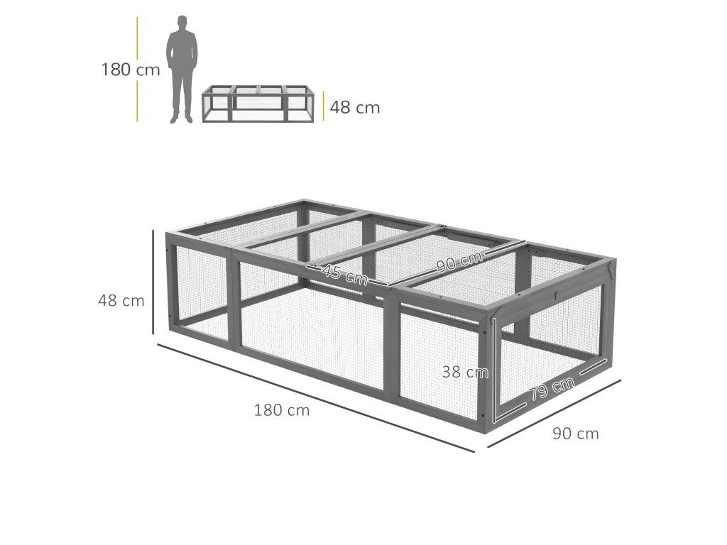 Tato velká, odolná venkovní králíkárna od značky nabízí vašim malým mazlíčkům možnost hrát si, jíst a spát na čerstvém vzduchu. Králík je vyroben z utěsněného, pevného a odolného jedlového dřeva a drátěného pletiva. Pro snadné krmení a údržbu lze střechu a boční panel snadno otevřít. Tento výběh pro malá zvířata je nejen stabilní, ale také odolný vůči povětrnostním vlivům. Tato králíkárna poskytuje ideální hrací plochu pro vaše malé mazlíčky.