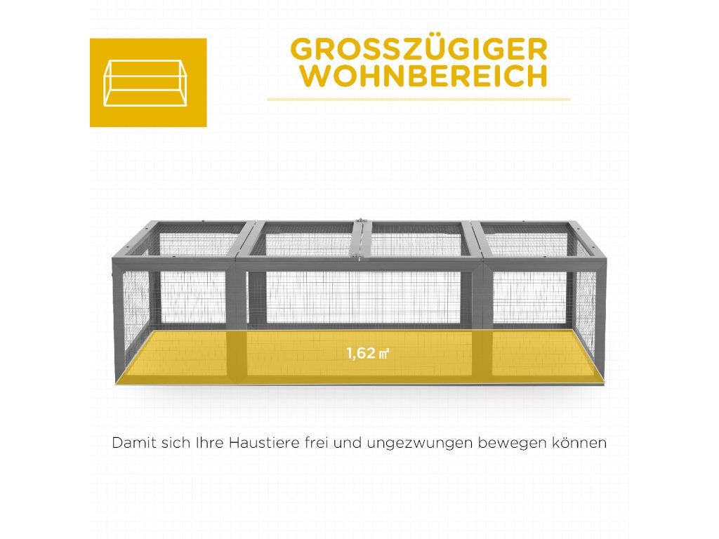 ✔ Výběh lze použít v kombinaci s venkovní králíkárnou.