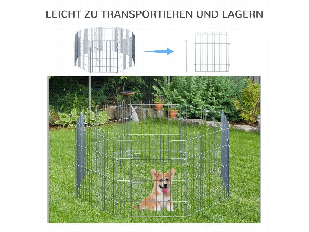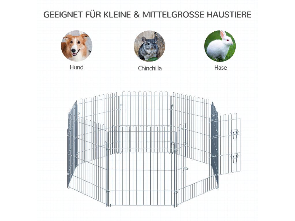 PROSTORNÁ HŘIŠTĚ: Ohrádka poskytuje mladým zvířatům bezpečnou a prostornou hrací plochu. Robustní kovové panely se snadno montují a lze je upevnit k zemi pomocí přiložených zemních kotev.