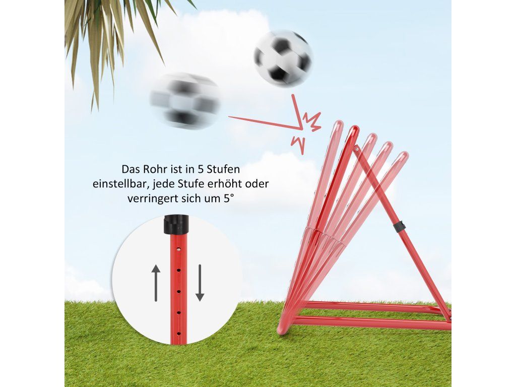 ✔ Nastavitelná trubka odrazové míče do 5 poloh, rozteč mezi polohami 5 cm, rozsah úhlu: 50°-70°.