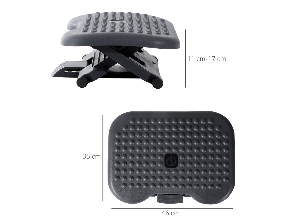Nastavitelná výška: Ergonomicky tvarovanou opěrku nohou lze nastavit do 3 výšek (11 cm, 14 cm, 17 cm) pro různé výšky. Pedál lze naklánět dopředu a dozadu pro podporu pohybu nohou, ale nelze jej zaaretovat. Maximální úhel sklonu je 30°. Zdravotní přínosy: Nastavitelná opěrka nohou vám pomůže udržovat správné držení těla, zlepšuje krevní oběh, ulevuje od bolavých nohou a snižuje tlak na spodní část zad.