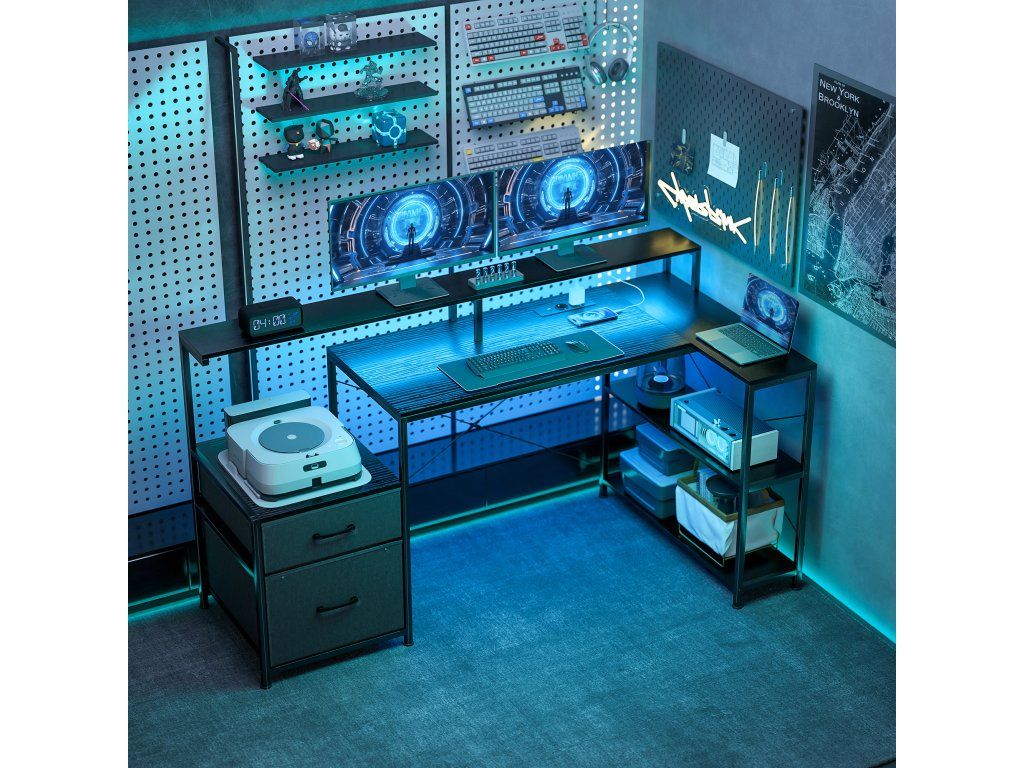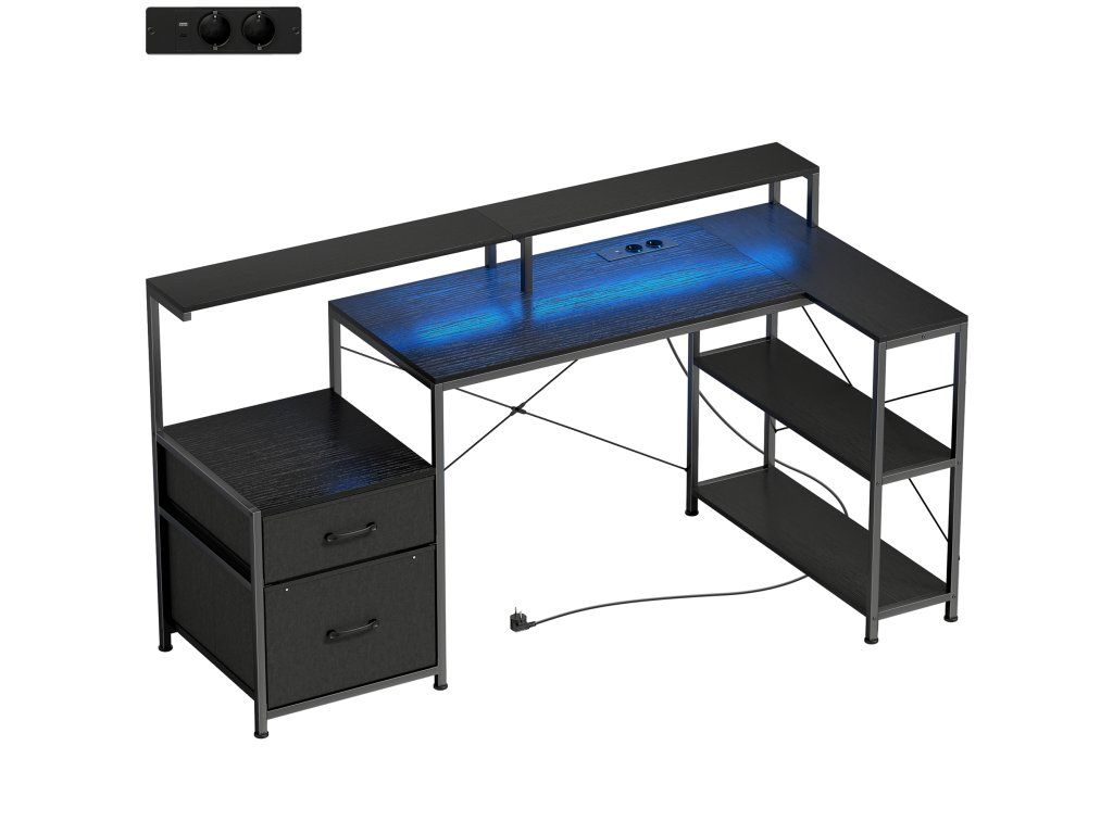 Dostatek úložného prostoru: Dvě látkové zásuvky, dvě otevřené přihrádky a další police poskytují dostatek prostoru pro dokumenty, herní příslušenství nebo jiná zařízení. Velká zásuvka pojme dokumenty formátu A4, Letter a Legal, což zajišťuje uklizený a organizovaný pracovní prostor.