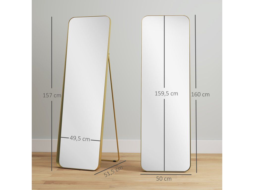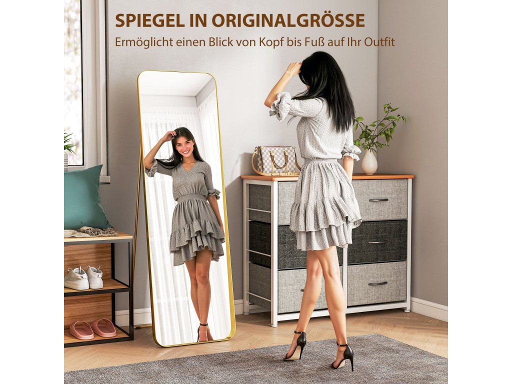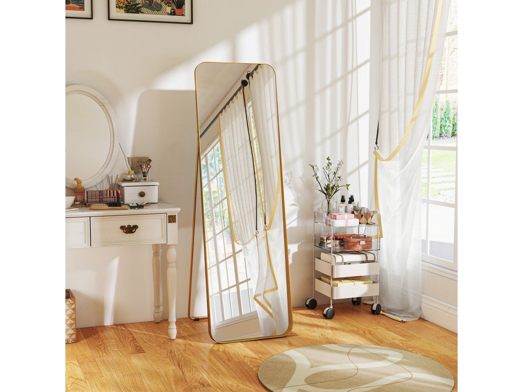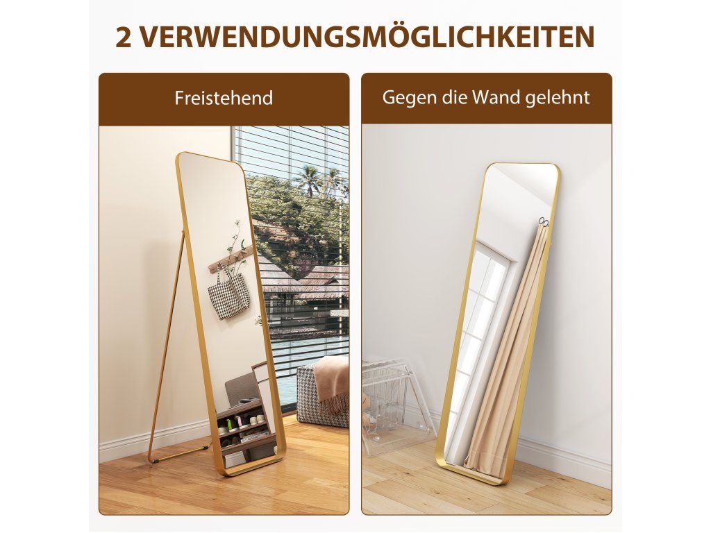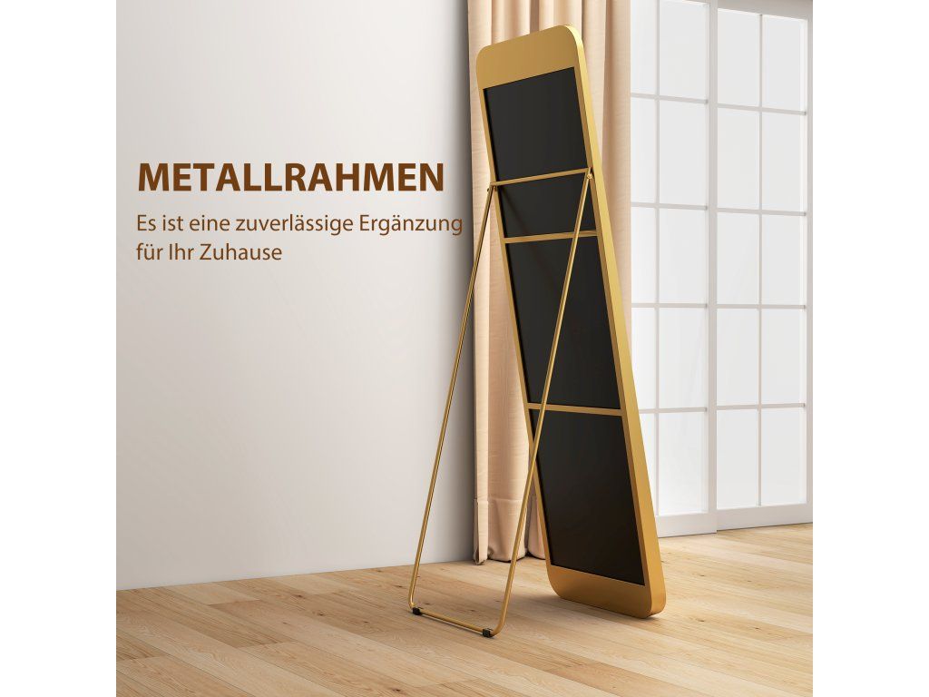 Jednoduchý a elegantní design: Vysoce kvalitní, zlatavě zkosený rám opticky zvětšuje výšku stojící zrcadla a dodává vašemu obytnému prostoru nádech elegance a stylu.