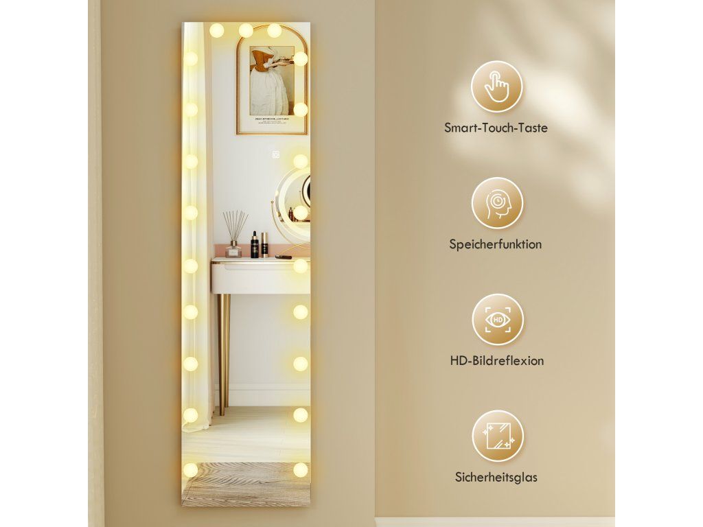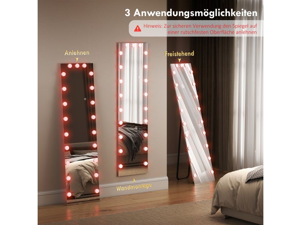 Bezrámový design s žárovkami v hollywoodském stylu: Toto zrcadlo o rozměrech 40 x 150 cm je vybaveno 21 žárovkami na elegantním bezrámovém povrchu a opticky zvětší váš pokoj a promění oblékání v okouzlující zážitek.