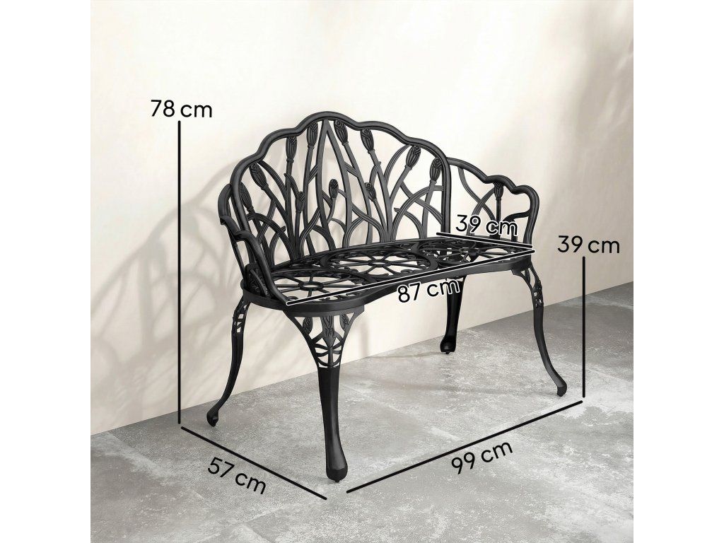 ✔ Zahradní lavice z litého hliníku, lehká, ale zároveň odolná proti korozi a robustní pro venkovní použití.
