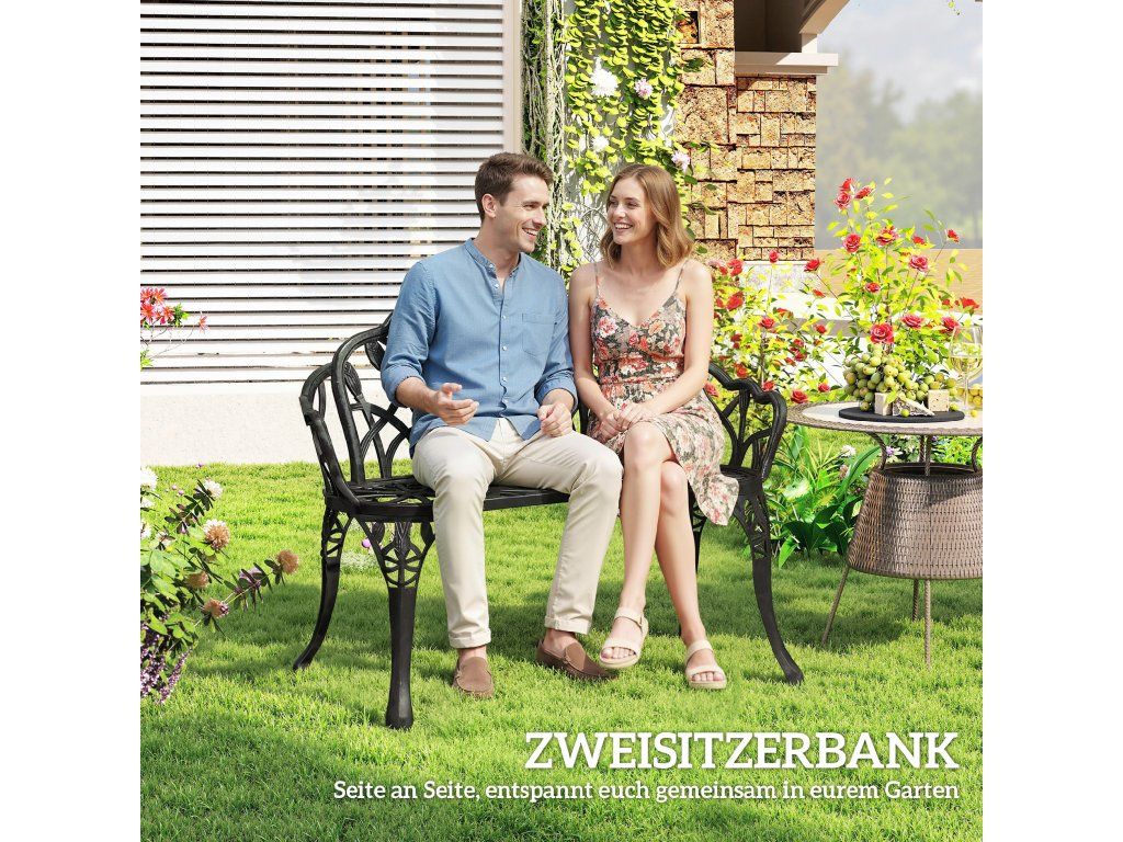 ✔ Dvoumístná zahradní lavice, ideální pro společné relaxační chvíle.