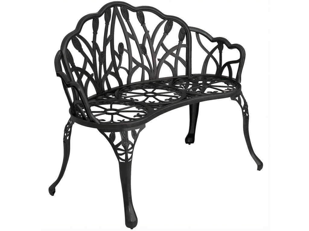 Zahradní lavice s květinovým motivem 99 x 57 x 78 cm | černá
